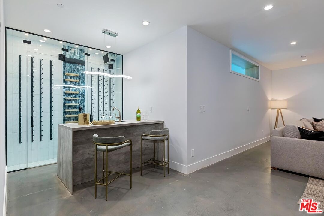 Exquisite brand new built 2022 modern villa with 3-levels of extraordinary living & entertaining areas in desirable Beverly Hills adjacent(1st home from Beverly Hills). A fully equipped home with 3 levels of living areas, separate guest house, cabana, fire pit, pool & spa tub, 2 car garage, elevator... Formal entry way to all entertaining areas with family room w/ fireplace, dining area, wine cellar and gourmet kitchen with an oversized center island all with direct access to the entertainers' backyard. The first floor also features a two car garage and guest's powder room. Sliding doors takes you to the private entertainers' backyard w/sparkling pool & spa, cabana, massive fire pit and lounging areas with shower. Outdoor area also features contemporary guest house with high ceilings, central air, little kitchenette and bathroom. Luxury living continues upstairs with an additional family room, 3 bedroom suites including a pristine master suite with fireplace, sliding glass doors- leading out to a private balcony overlooking the backyard, walk-in closet, and a spa-like bath with large steam shower, soaking tub, dual sinks and vanity area. Underground level offers big ballroom, wet bar, temperature-controlled wine cellar, patio and incredible large underwater window view of the pool. In addition, this level has a bedroom suite with full bathroom, gym and a den/office/maid room with full bathroom. Top notch amenities include security cameras, smart home system, surround sound, elevator, pool, spa, guest house, laundry room, central vacuum, 2 car garage and more. Lower level (basement) 1443 sqft * First floor 1023 sqft * Second floor 1195 sqft * Recreation room (guest house) 200 sqft * Cabana 144 sqft * Garage 346 sqft.
