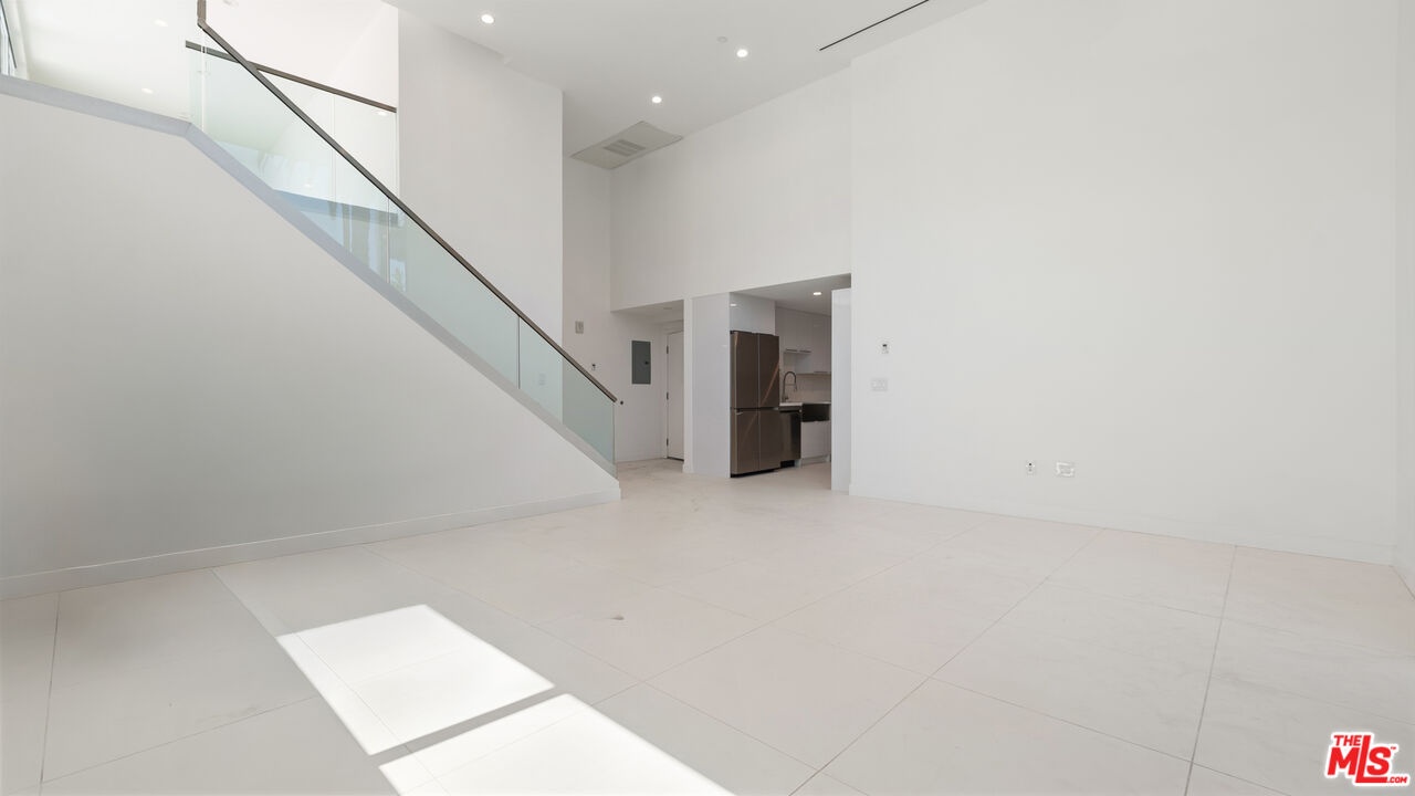 Virtual Staging Shown. This residence offers 1,306 square feet of thoughtfully designed interior space, complemented by more than 573 square feet of private outdoor living, including a patio, yard, and terrace. Welcome to THE TITANIUM, Unit 1 - Zirconium, a striking two-story architectural condominium defined by soaring ceilings exceeding 20 feet, expansive natural light, and a seamless connection between indoor and outdoor spaces. The upper-level loft, complete with its own private terrace, overlooks the dramatic living area below and provides flexibility as a home office, gym, creative studio, or potential additional bedroom. The main level opens directly to a private patio and yard, creating an effortless indoor-outdoor lifestyle. Additional highlights include two well-appointed primary suites, direct elevator access, and two side-by-side parking spaces in a secure garage. Ideally located just moments from Melrose Place, this distinctive residence offers a rare blend of privacy, design, and convenience in one of West Hollywood's most sought-after neighborhoods.