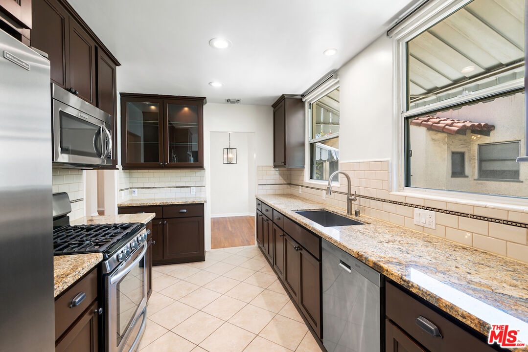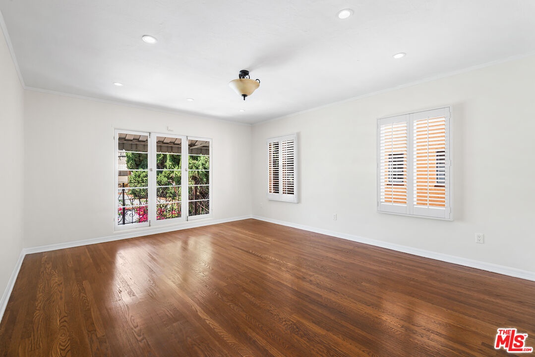 SPACIOUS UPPER SPANISH DUPLEX UNIT IN HANCOCK PARK. This huge 3 bedroom/2 bathroom duplex unit in a beautiful, character-rich Spanish property features a grand living room with gas fireplace, a formal dining room and an updated kitchen with separate breakfast room and laundry room. There is a huge primary suite and two additional generous bedrooms, one ensuite. and two period bathrooms. Additional features include central AC, a two-car garage, hardwood floors throughout, ample closet space, and lots of period details. Close to Larchmont and Beverly Grove, on a beautiful tree lined street in Hancock Park.