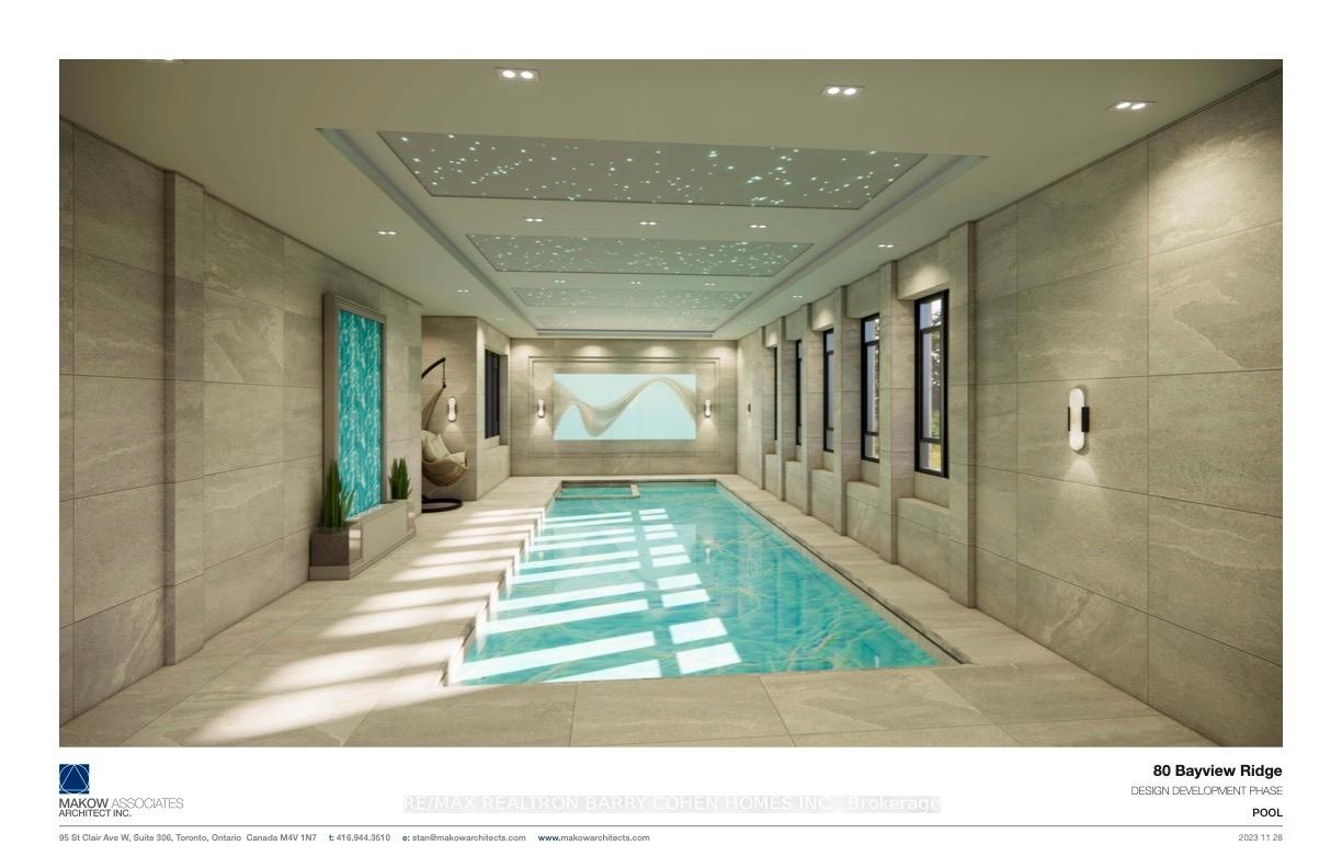 Prestige. Privacy. Possibility. 80 Bayview Ridge - A Signature Estate Opportunity In One Of Toronto's Most Coveted Enclaves.Set On An Extraordinary 100 X 250 Ft Estate-Style Lot, This Remarkable Property Offers Exceptional Scale, Mature Greenery, And A Beautifully Maintained In-Ground Pool Framed By Lush Perennial Gardens-An Oasis Of Complete Privacy In The Heart Of Bayview Ridge.The Existing Residence, Measuring 7,715 Sq. Ft., Is Warm, Inviting, And Comfortably Livable. Sunlit Interiors Feature Multiple Skylights And Five Fireplaces, Enhancing Both Charm And Ambiance. Generous Principal Rooms Include A Richly Appointed Wood-Panelled Library With Fireplace, A Classic Living Room, A Formal Dining Room Adorned With Luxurious Silk Wall Finishes, And A Grand Family Room With Skylight, Fireplace, And Walk-Out To The Serene Backyard.The Walk-Out Lower Level Elevates Everyday Living With A Dedicated Theatre Room, Spacious Recreation And Entertainment Areas, And Flexible Spaces Ideal For Hosting, Relaxing, Or Accommodating Extended Family. A Three-Car Garage And The Estate's Exceptional Lot Size Complete This Distinguished Offering. While The Home Is Perfectly Enjoyable As-Is, The Value Lies In The Land And Redevelopment Potential. Architectural Plans By Makow Architects For A New Luxury Residence Of Over 18,000 Sq. Ft. Are Available, And The Building Permit Is Already Approved And Ready, Making This A Truly Turnkey Opportunity For A Future Signature Estate. An Exceptional Bayview Ridge Address Where Privacy, Timeless Elegance, And Limitless Opportunity Converge-Whether You Choose To Live, Enhance, Or Build New.