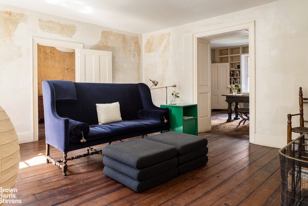 A process of search and discovery started in 1995 created a minimalist work of artful preservation at 25 Cranberry Street, a late 18th century farmhouse, recorded by the NYC Registrar in the early 19th. Layers of paper peeled away to reveal shades of ochre and indigo on plaster and 60's flooring lifted to exquisite original planks. An enchanting World of Interiors emerged and was captured in print by WOI in December 2005.