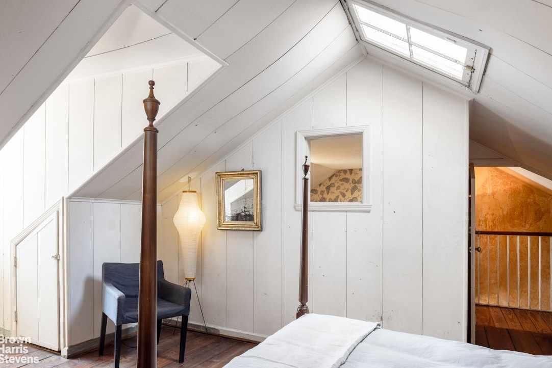 From then until now, the preservationist-in-residence has managed all with a delicate and refined sensibility. The option of raising the rear top floor roof for a view of sky, garden and a second bath, invites the next owner to open a new chapter in the history of this home. Stones in the garden from a past farm boundary await their next purpose.