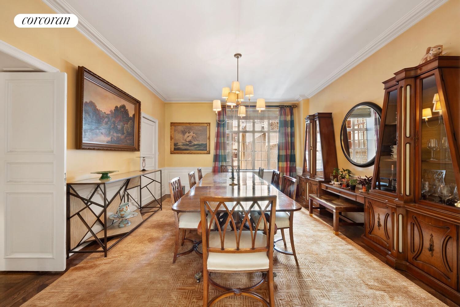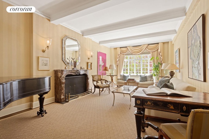 The south facing duplex apartments at the iconic Millan House, built by John D. Rockefeller, have always been great favorites among denizens of the Upper East Side. This duplex is particularly lovely as it looks out onto the trees, emphasizing the original intention of quiet townhouse living within a fully serviced cooperative. Downstairs you enjoy the gracious entertaining rooms including a library with full bath - if an extra guest room is needed. The living room has a working wood burning fireplace for cozy winters, and the entry hall still retains the classic Rockefeller stonework. A large eat in kitchen with double staff room is at the very back of the floor. Upstairs are the three large bedrooms - all with private baths.