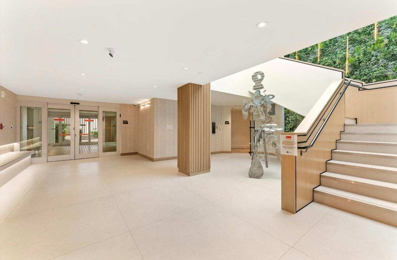 A private elevator opens directly into the home, where vaulted ceilings and floor-to-ceiling impact glass frame the sweeping views. The kitchen faces the ocean and features premium appliances, custom cabinetry, and luxury finishes throughout. Multiple balconies wrap the residence, connecting the interior to the surrounding water and sky. The primary suite accesses to both south and east-facing terraces. Every bedroom is en suite and finished with designer details.