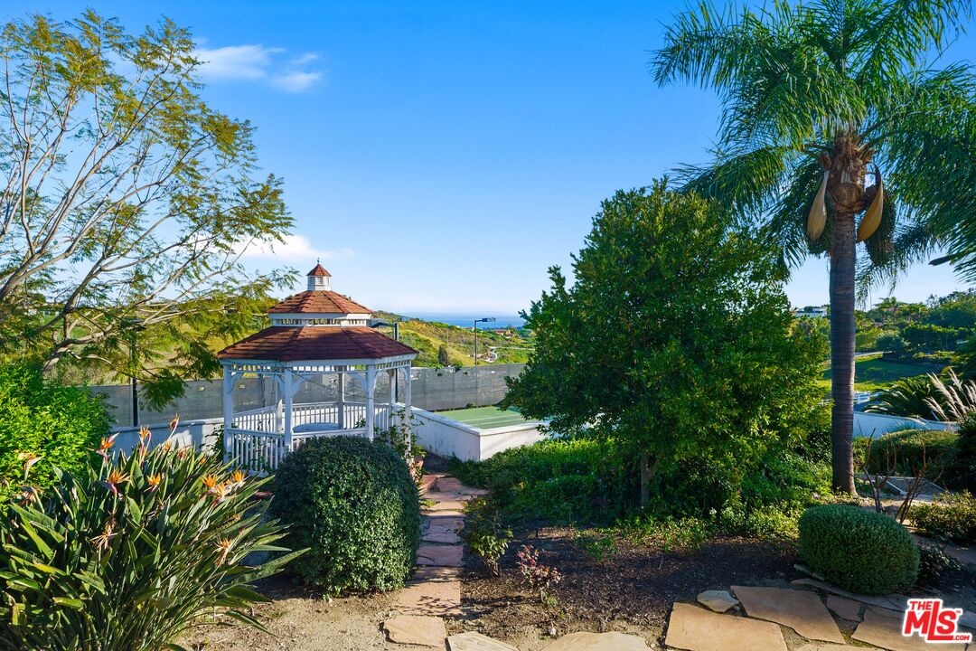 Sitting on nearly an acre, this exceptional home offers sweeping ocean views, resort-like amenities, and privacy within gated Cavalleri estates. A double gated driveway opens to a beautifully landscaped property designed for relaxation and grand-scale entertaining. The light-filled residence captures the essence of coastal living, with expansive patios and outdoor spaces that take full advantage of the stunning surroundings. The ocean view primary is on the entry level, along with another bedroom and bath. Upstairs are two more bedrooms, both en-suite, along with a huge bonus room, also with beautiful ocean and hillside views. A sparkling pool and spa sit at the heart of the grounds, complemented by a lighted tennis court, lush lawns, and vibrant gardens dotted with mature fruit trees. Multiple outdoor gathering areas create the perfect setting for hosting, including a charming outdoor fireplace lounge and a barbecue area ideal for sunset dinners and weekend gatherings. The generous grounds, which are fully walled and gated, provide a sense of serenity and seclusion while still being just minutes from Malibu's shops, restaurants, and beaches. Private, picturesque, and designed for effortless indoor-outdoor living, this Mediterranean retreat offers the ultimate Malibu lifestyle whether enjoying quiet coastal mornings or entertaining under the stars.