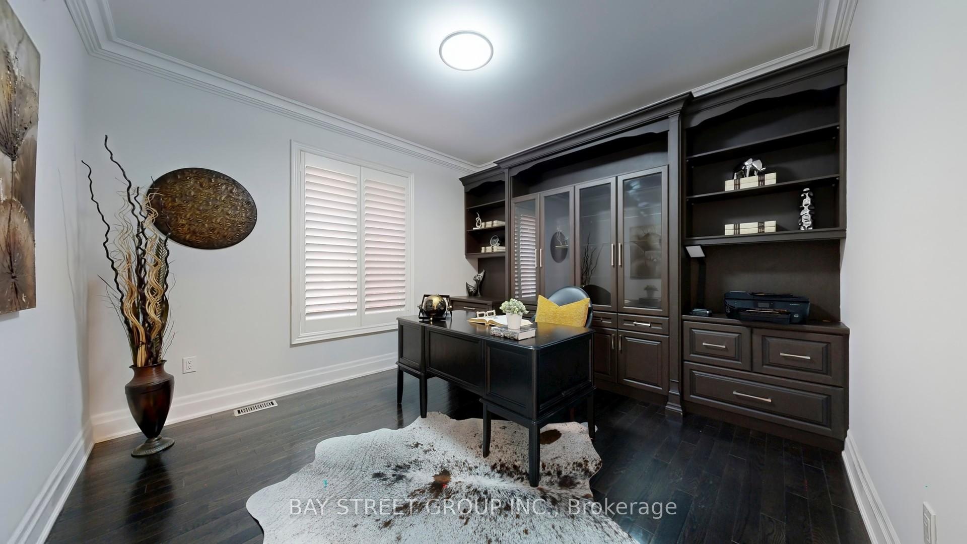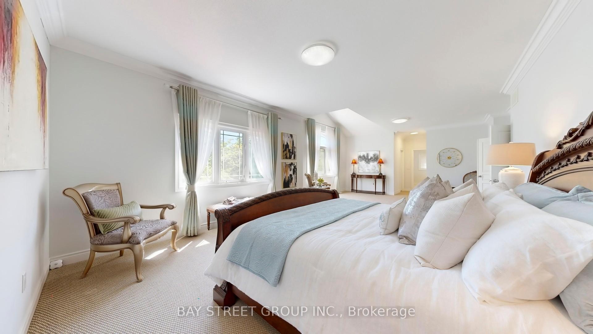 Experience luxury living in this remarkable ravine-lot home located in the prestigious Upper Thornhill Estates community. Designed with both elegance and functionality in mind, the main floor showcases formal living and dining rooms, a secluded home office, and a gourmet kitchen enhanced by granite countertops and high-end appliances. The dining area is elevated by an elegant coffered ceiling and opens seamlessly to the grand living room, where soaring ceilings, oversized windows, and plentiful natural light create an impressive sense of space. Bathed in natural light, the family room is anchored by an impressive custom built-in feature wall with open display shelving and a gas fireplace framed by a classic mantle. From the expansive elevated deck, take in sweeping panoramic views of the picturesque ravine, framed by mature trees and lush greenery. A custom glass railing ensures clear, unobstructed views, while the generous layout easily accommodates both dining and lounging areas, offering a perfect setting to unwind with nature all around. On the second level, the primary bedroom is exceptionally large, featuring a cozy sitting area and two walk-in closets for added comfort and convenience. The additional bedrooms are also generously sized and well designed ideal for family members or guests. The backyard oasis extends to the lower level with direct walkout access from the basement, creating a seamless connection between elegant indoor living and peaceful outdoor surroundings. This level also features a designer bar with custom cabinetry, a wine fridge, beverage coolers, stone countertops, and built-in shelving, making it perfect for entertaining. The spacious recreation area offers a sleek contemporary fireplace, a large TV feature wall, stylish lighting, and a dedicated lounge and entertainment space. Brand-new Carrville Community Centre, Library and District Park, top-rated schools, a golf club, GO station, Vaughan Mills, hospital. Surrounded by parks, trails.