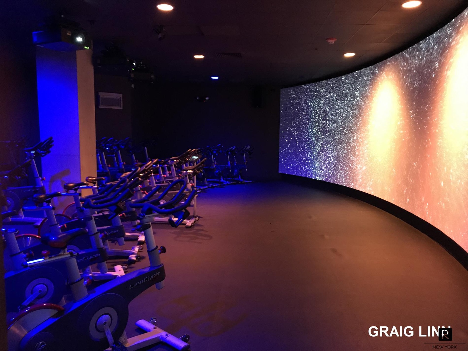 ? Virtual reality cycling room with an immersive 30-foot video wall