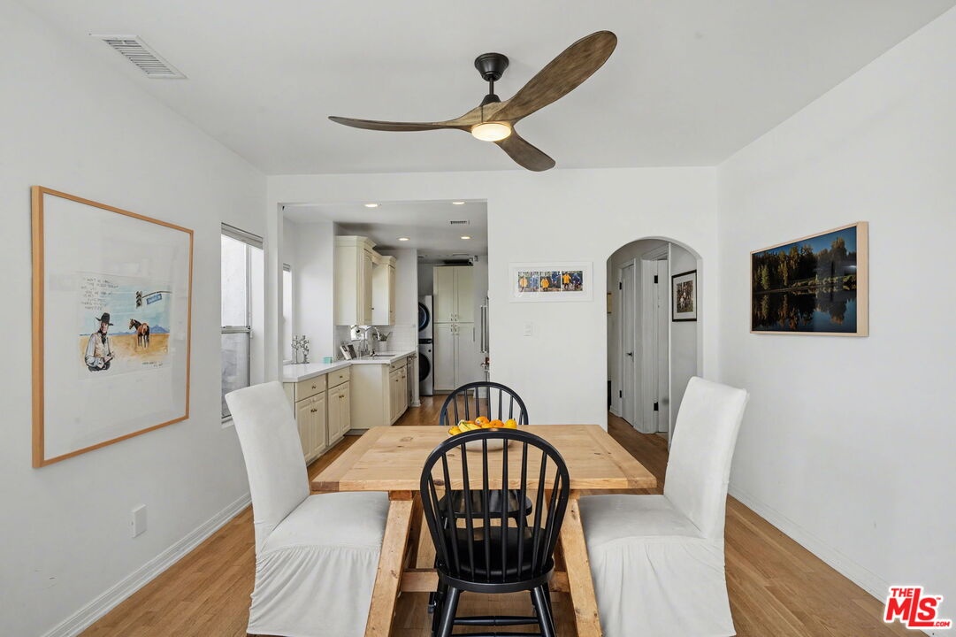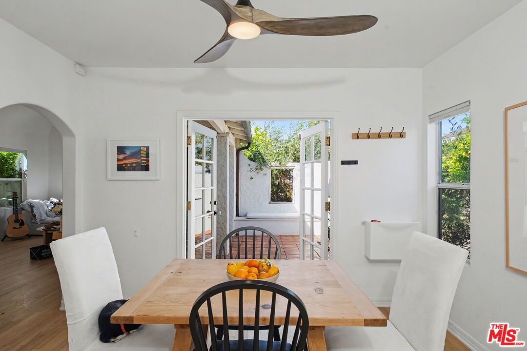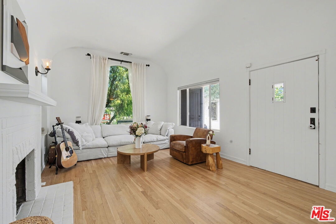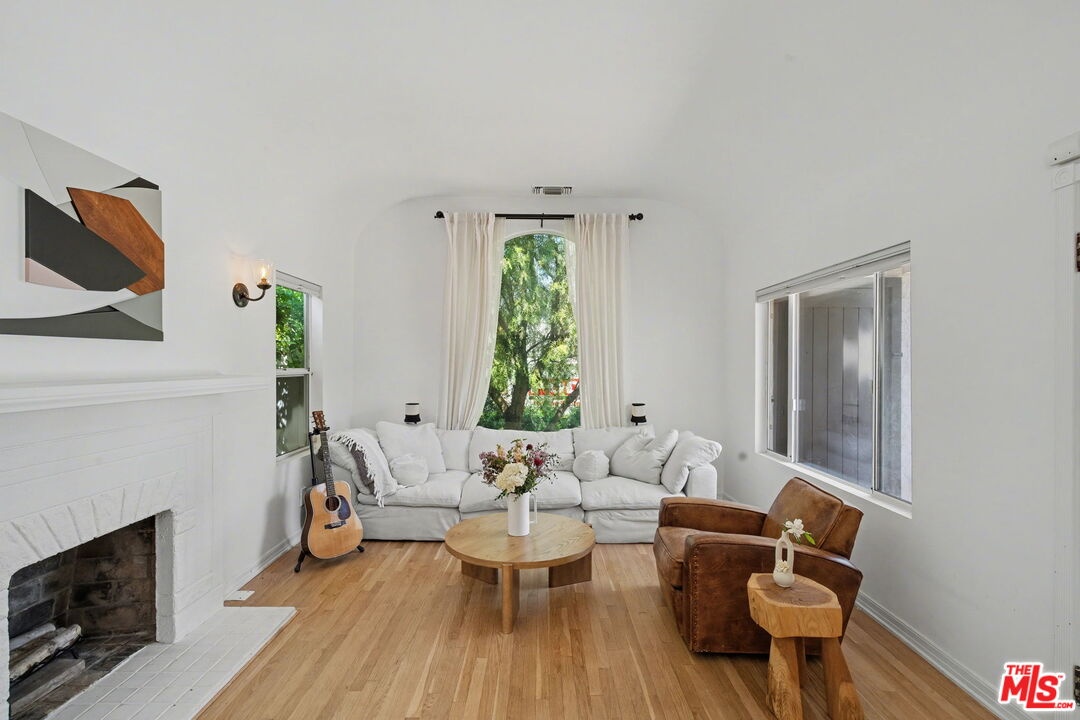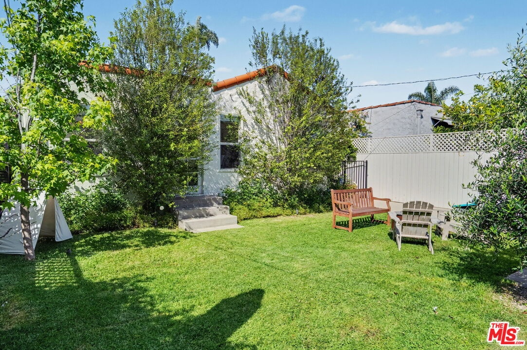 A delightful Spanish-style home on a charming Beverlywood street, this fully remodeled 3-bedroom, 2-bath residence offers warmth, character, and thoughtful updates. A gated driveway with electrical car charging and an enclosed front yard provide privacy and lead to a beautiful courtyard that creates a seamless connection between the home's indoor and outdoor spaces. The formal living room features a decorative fireplace and a large picture window overlooking the front yard and surrounding trees. Filled with natural light, the nicely sized kitchen offers granite countertops, stainless steel appliances, and opens to the dining room for easy everyday living and entertaining. All three bedrooms are sunny, well proportioned, and inviting. The primary bedroom includes direct access to the backyard along with a newly added en suite bathroom. The second bathroom has also been stylishly updated. The property offers a grassy backyard, generous side yards, and a detached two-car garage that has been remodeled into a beautiful approximately 500-square-foot guest house or bonus living space with its own bathroom. The entire home has been extensively updated throughout while preserving its original charm, with details such as hardwood floors, arched doorways, updated plumbing, beautiful landscaping and crystal doorknobs. Ideally located in the award-winning Castle Heights Elementary School district and close to the shops and restaurants.
