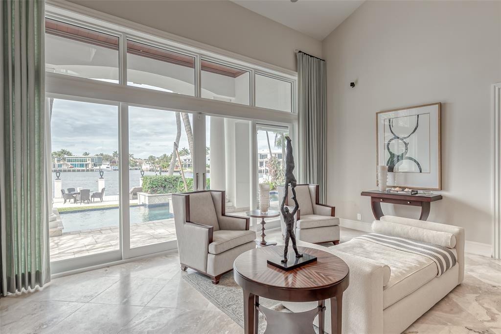 Spectacular unobstructed views of Lake Sylvia in exclusive HARBOR BEACH! Completely renovated 8,000± sq ft waterfront estate featuring 112 FT OF DEEPWATER FRONTAGE WITH 2 BOAT LIFTS, 8 bedrooms, & a Resort-Style heated pool & spa! Expansive covered outdoor living areas, balconies, water features, & full outdoor bar ideal for entertaining. Highlights include media room, maid's quarters, private office, and chef's kitchen. Luxurious primary suite offers a large balcony with panoramic lake views, lush tropical landscaping, and stunning sunsets! Soaring ceilings and open floor plan. FULLY DESIGNER FURNISHED and move-in ready. Situated on nearly 1⁄2 acre, this private waterfront retreat offers true resort living. MASTER BATH FULLY RENOVATED! Available immediately for short-term/seasonal rental ONLY. Accepting between 6-8 months Lease ONLY.