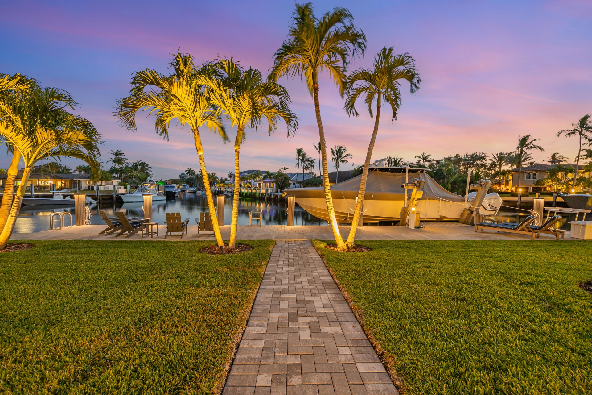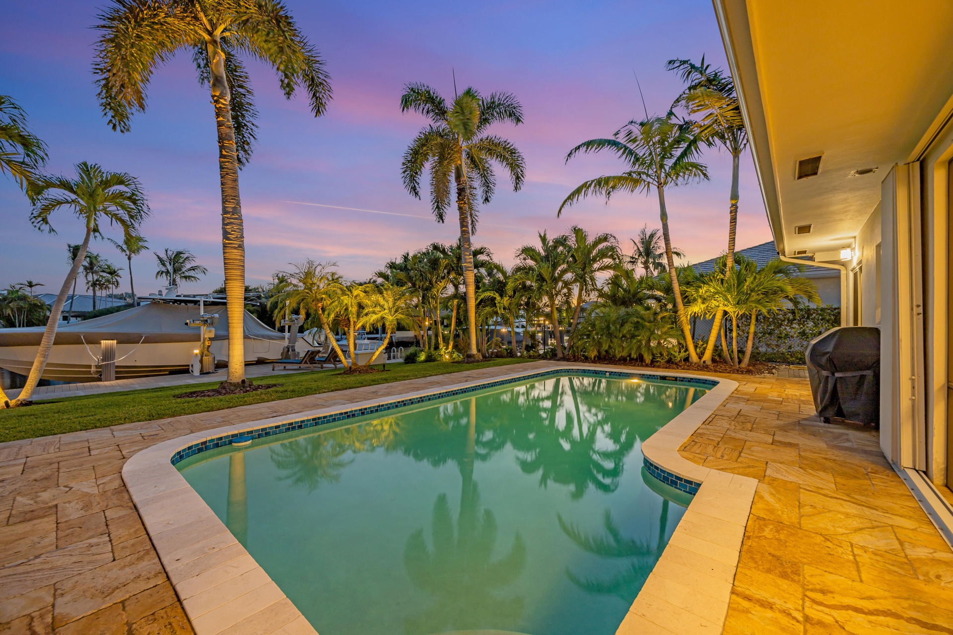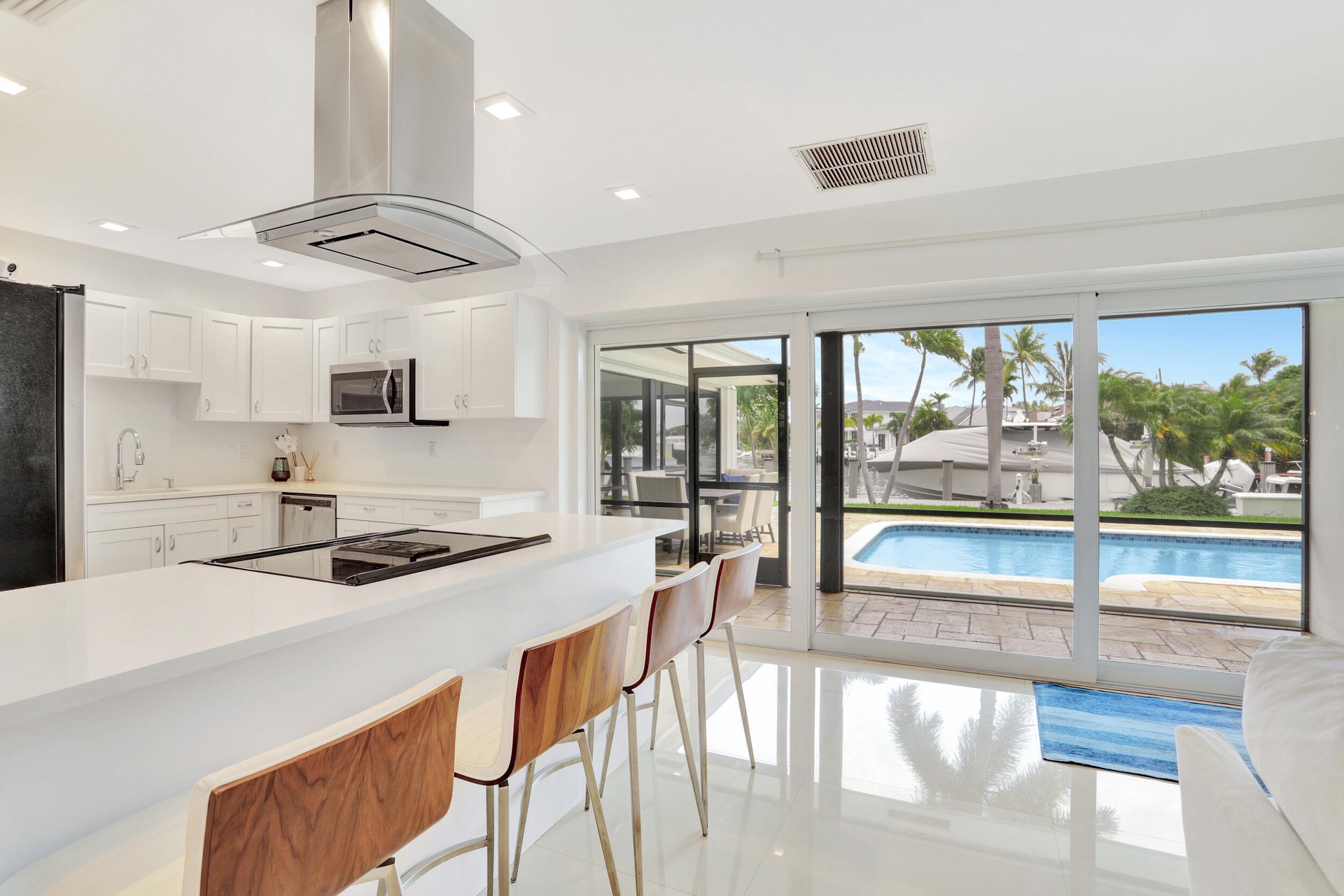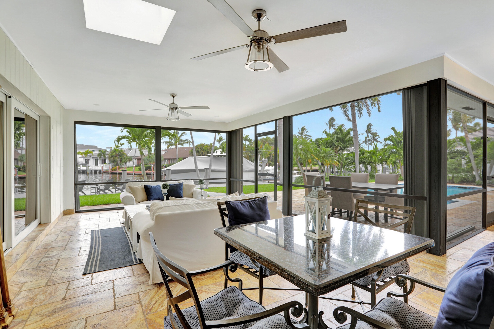 Introducing The Commodore's Boathouse in the desirable Cove enclave of East Deerfield Beach, sited on 90' of deep water frontage with picturesque southern long water views at an intersecting turning basin on the extra wide Kingfisher Waterway. This fully furnished exceptional estate offers 3 bedrooms and 3 full bathrooms with 3,000+/- square feet of total space. Outdoor entertainment is enjoyed under the expansive screened-in porch. Amenities include a resort-style heated & chilled pool, updated interiors, impact windows/doors, and more. Conveniently walkable to Deerfield Beach Pier & nearby world-class restaurants. Available now through 2026/2027. Fully furnished and includes utilities, landscaping, housekeeping and pool service. Rent is variable based on length of lease.