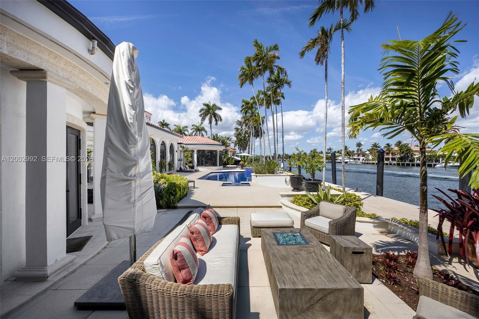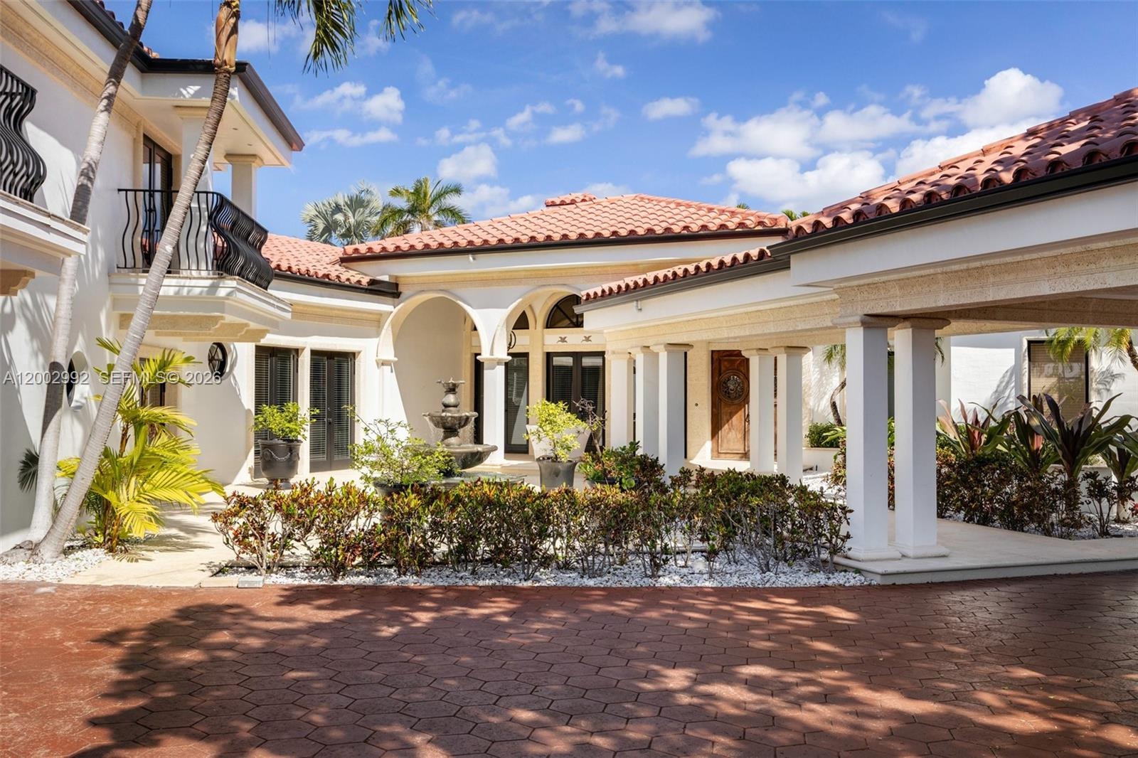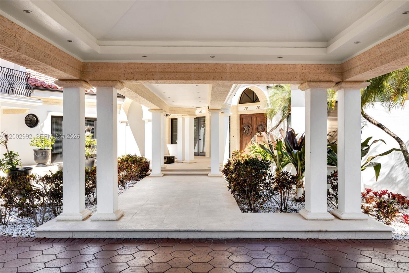 This masterpiece boasts a brand-new metal roof with a 100-year warranty, hurricane-rated bulletproof glass windows, and soaring ceilings. The chef’s kitchen and prep kitchen shine with custom cabinetry, crystallo countertops, a new pantry, and premium appliances, while a chic bar and lounge offer the ultimate entertaining space with stunning water views. The first-floor primary suite features coffered ceilings, pool access, a spa-like en suite, and a walk-in closet. Bathrooms are being renovated to reflect the home’s elevated style.