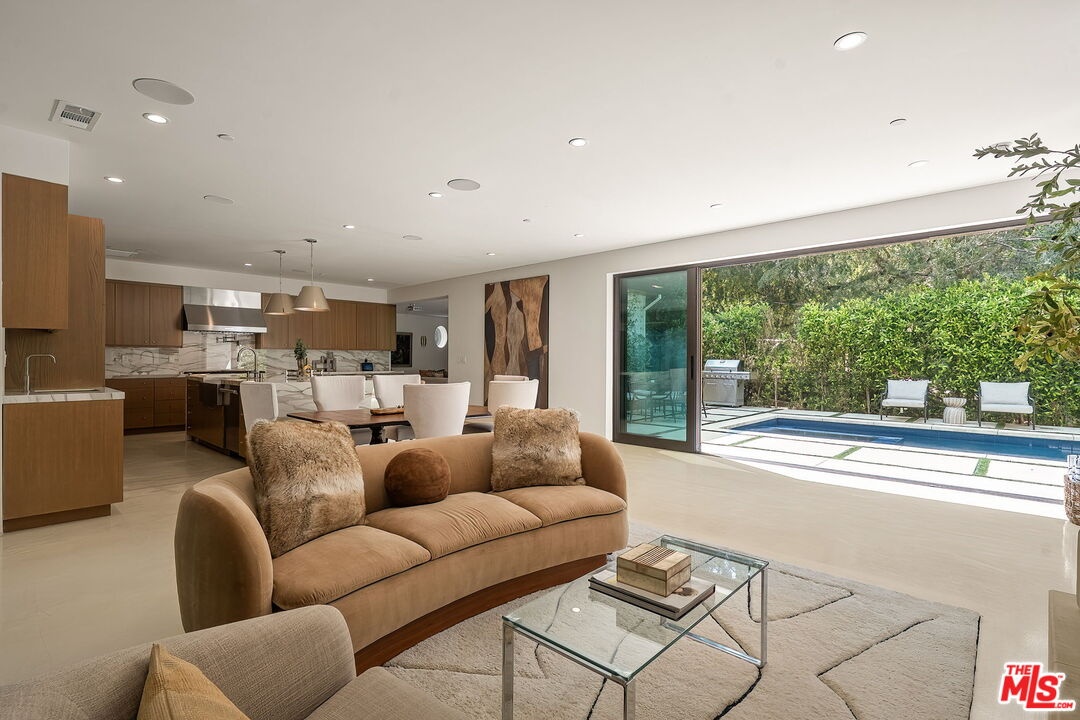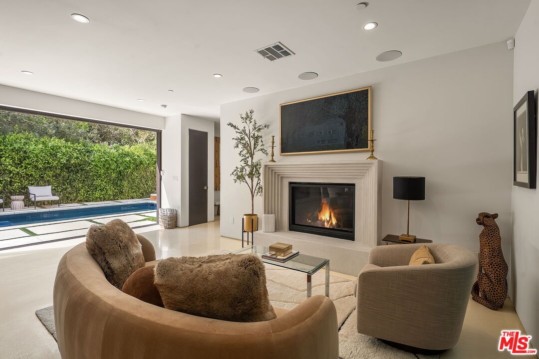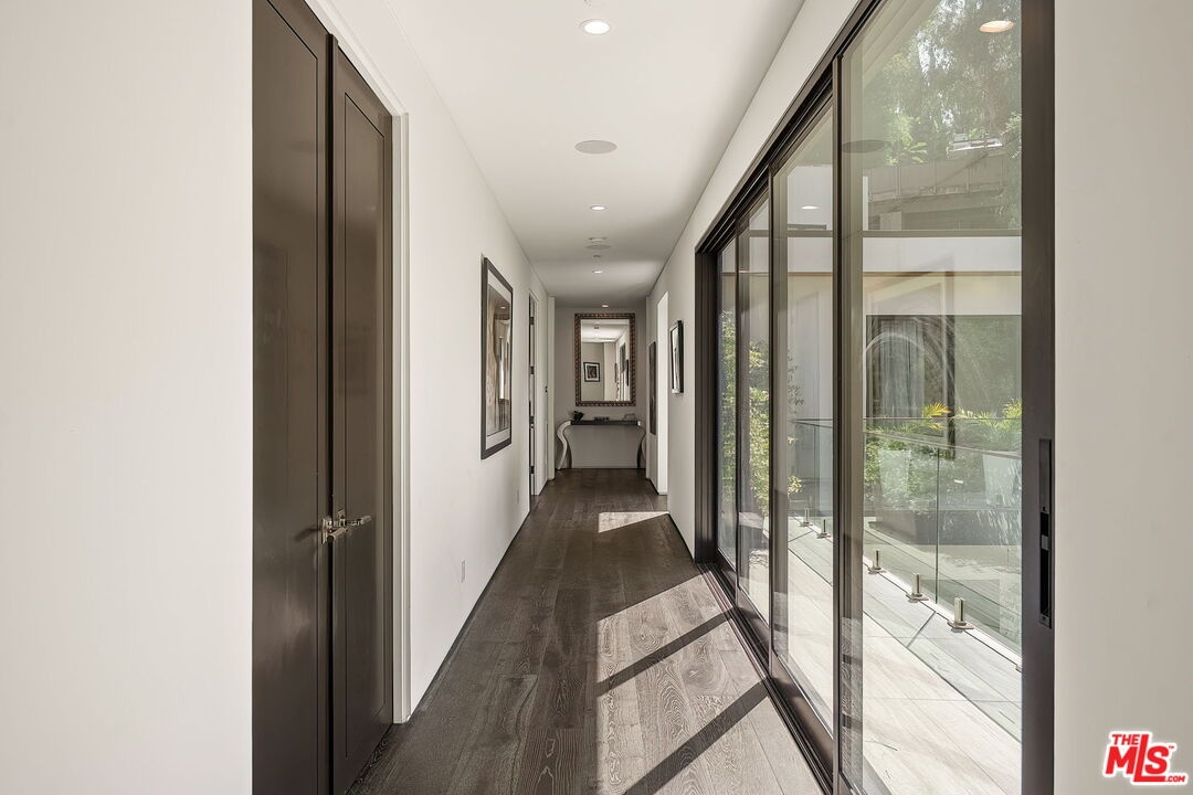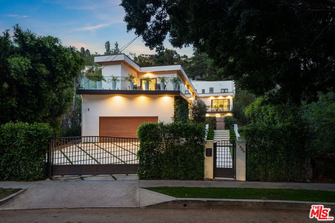 Newer construction pool home behind gate and hedges with peaceful mountain views on quiet and easily accessed Laurel Canyon Road. A breathtaking modern retreat located just a few blocks North of Sunset in the magical Laurel Canyon Neighborhood, famously popularized by rock stars like Stevie Nicks, Jim Morrison, the Eagles, Jackson Browne, Jimmy Hendrix, Linda Ronstadt and Rufus Wainwright.Conveniently located minutes from Sunset Plaza, Chateau Marmont, and shopping and dining in West Hollywood or Beverly Hills.Enjoy designer done interiors with white oak kitchen cabinets perfect for entertaining, open floor plan, a home theatre screening room, State of the art home sound system, built in security system, advanced home control features make life easy. Open the walls of glass and the fragrant night-blooming jasmine fills the air.Easily accessed as it is located on the quiet "Laurel Canyon Road" adjacent to Laurel Canyon near famous Pace restaurant misty Canyon light fills the generous rooms. The gas fireplace provides a cozy place to warm up after a swim. Up the glass, steel and ebonized wood staircase we find 4 full sized bedrooms, including a large primary , with exterior balcony space for sunbathing and reading.