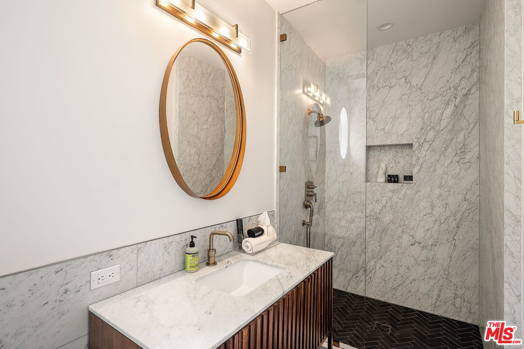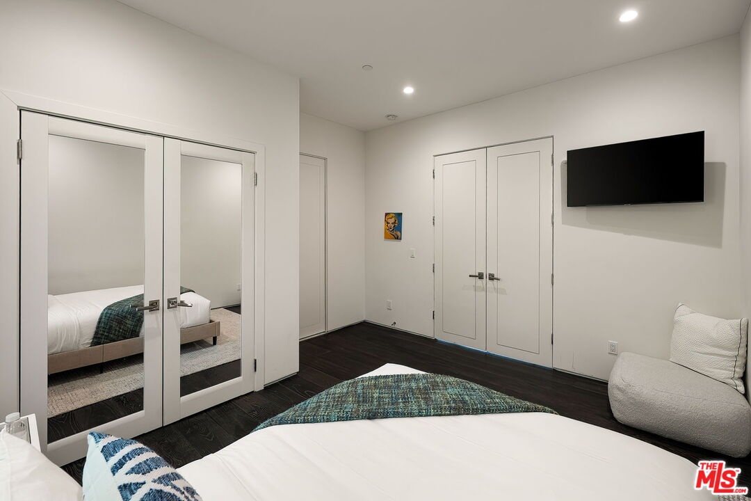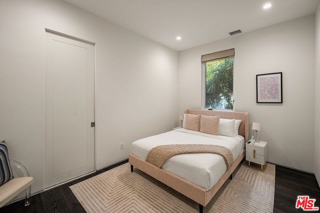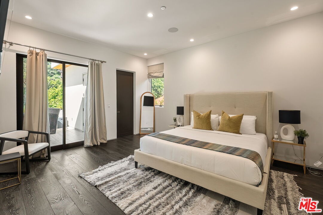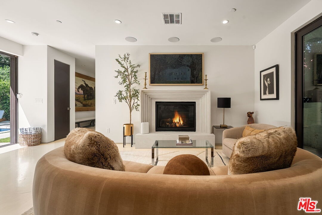 Newer construction pool home behind gate and hedges with peaceful mountain views on quiet and easily accessed Laurel Canyon Road. A breathtaking modern retreat located just a few blocks North of Sunset in the magical Laurel Canyon Neighborhood, famously popularized by rock stars like Stevie Nicks, Jim Morrison, the Eagles, Jackson Browne, Jimmy Hendrix, Linda Ronstadt and Rufus Wainwright.Conveniently located minutes from Sunset Plaza, Chateau Marmont, and shopping and dining in West Hollywood or Beverly Hills.Enjoy designer done interiors with white oak kitchen cabinets perfect for entertaining, open floor plan, a home theatre screening room, State of the art home sound system, built in security system, advanced home control features make life easy. Open the walls of glass and the fragrant night-blooming jasmine fills the air.Easily accessed as it is located on the quiet "Laurel Canyon Road" adjacent to Laurel Canyon near famous Pace restaurant misty Canyon light fills the generous rooms. The gas fireplace provides a cozy place to warm up after a swim. Up the glass, steel and ebonized wood staircase we find 4 full sized bedrooms, including a large primary , with exterior balcony space for sunbathing and reading.