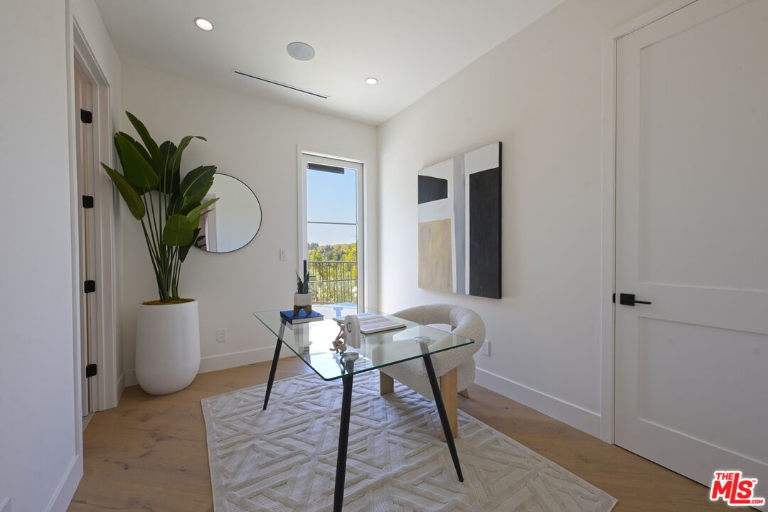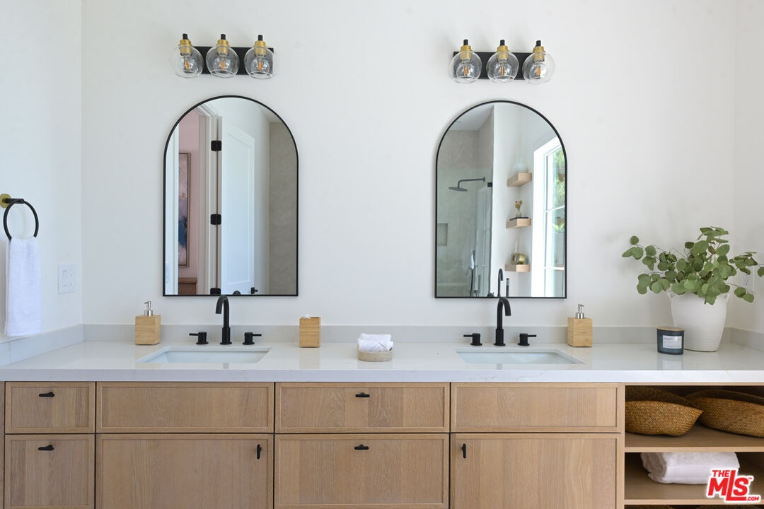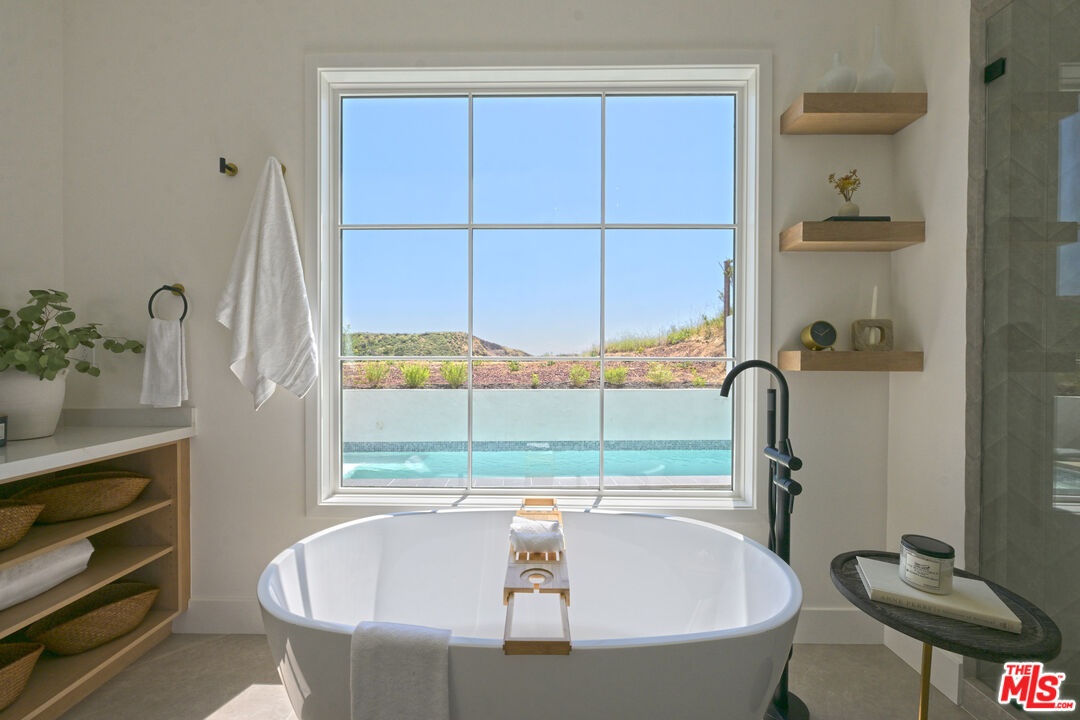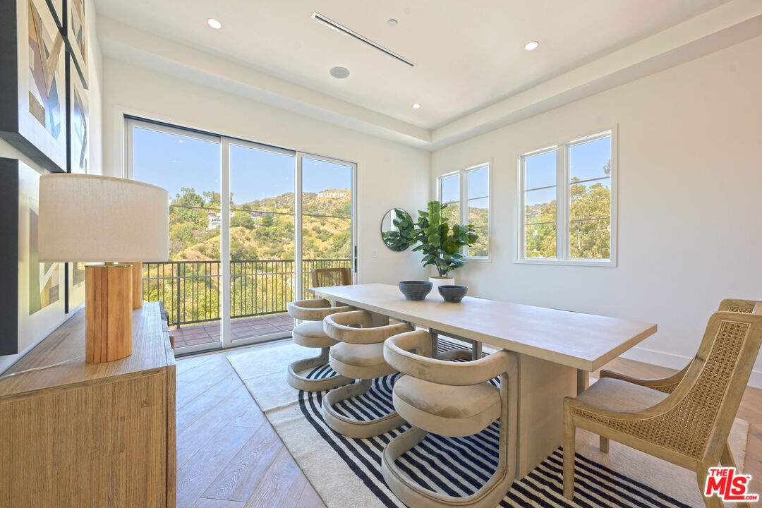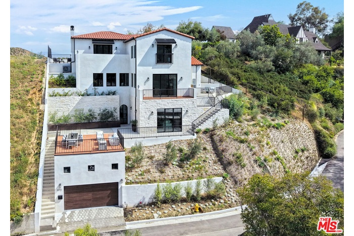 Sited on a promontory with commanding views of the Hollywood sign, Beachwood Canyon and the city below, this just completed extraordinary new construction presents as a classic Hollywoodland villa, blending seamlessly into this historic neighborhood, but reveals astonishing open, expansive interiors with a warm, organic modernism, executed with exquisite taste and style that simply cannot be matched in any other Beachwood property. Flooded with natural light and with views from every room, the home offers contemporary elegance and luxurious details throughout. The oversized chef's kitchen with top-of-the-line appliances and huge island opens to a voluminous living room and dining room, built for grand entertaining and intimate gatherings alike. The spacious entry level family room offers a multitude of options. The luxurious primary suite enjoys canyon views on one side and swimming pool and city towers on the other. With four bedrooms and five and a half bathrooms, multiple patios and terraces, a sparkling new pool and endless views, this iconic offering can never again be replicated. Elevated from the street and with Griffith Park behind, this unique trophy property affords the ultimate in seclusion and privacy. Superbly located near to Beachwood Cafe & Market, Griffith Park and Franklin Village, with commuter friendly access to major hubs of commerce and entertainment.