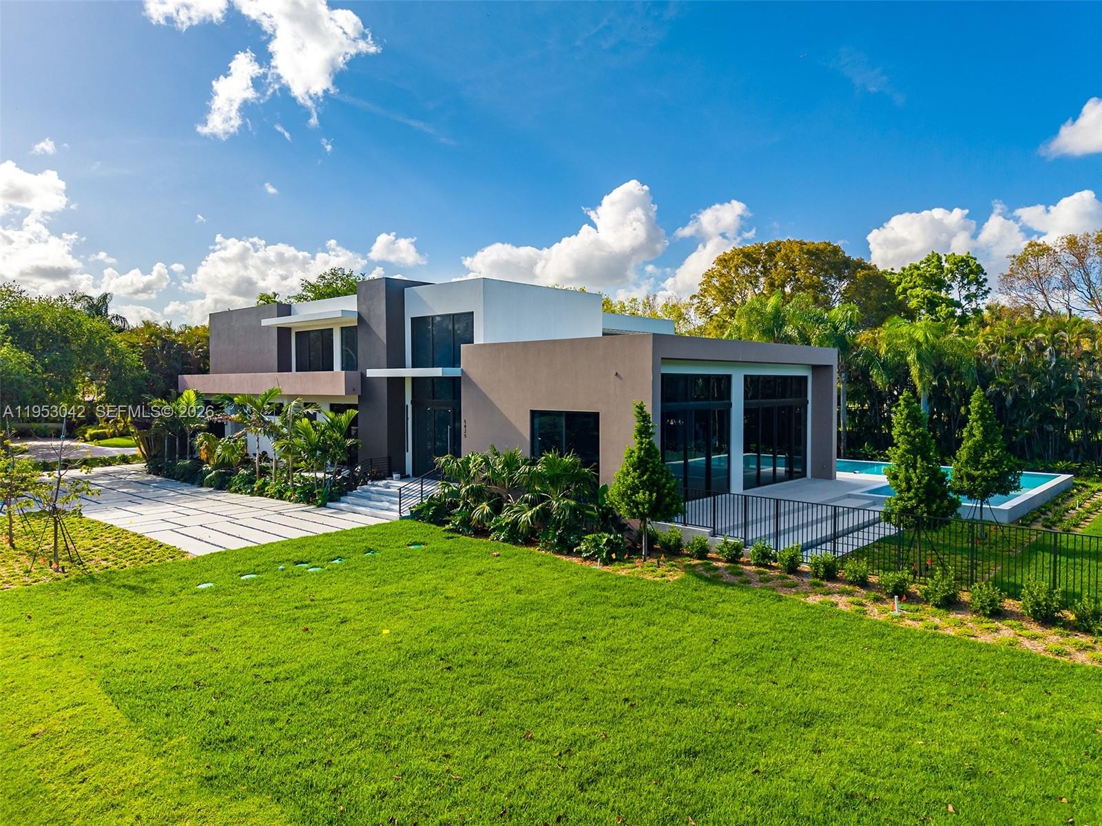 Nestled in the heart of Pinecrest, this brand-new construction residence sits on an expansive builder’s acre lot and features volume ceilings with floor-to-ceiling windows that flood the open-concept interiors with natural light. Designed for both everyday living and entertaining, the home offers 6 bedrooms and 7.5 bathrooms, formal dining, and a thoughtfully appointed wet bar. The kitchen is equipped with subzero and wolf appliances, Italian cabinetry, and custom built-ins. Additional highlights include a flexible room with en-suite bath, guest accommodations, cabana bath, elevator, concrete roof, three-car garage, covered terraces, and a summer kitchen is seamlessly integrated with the outdoor living areas and pool.