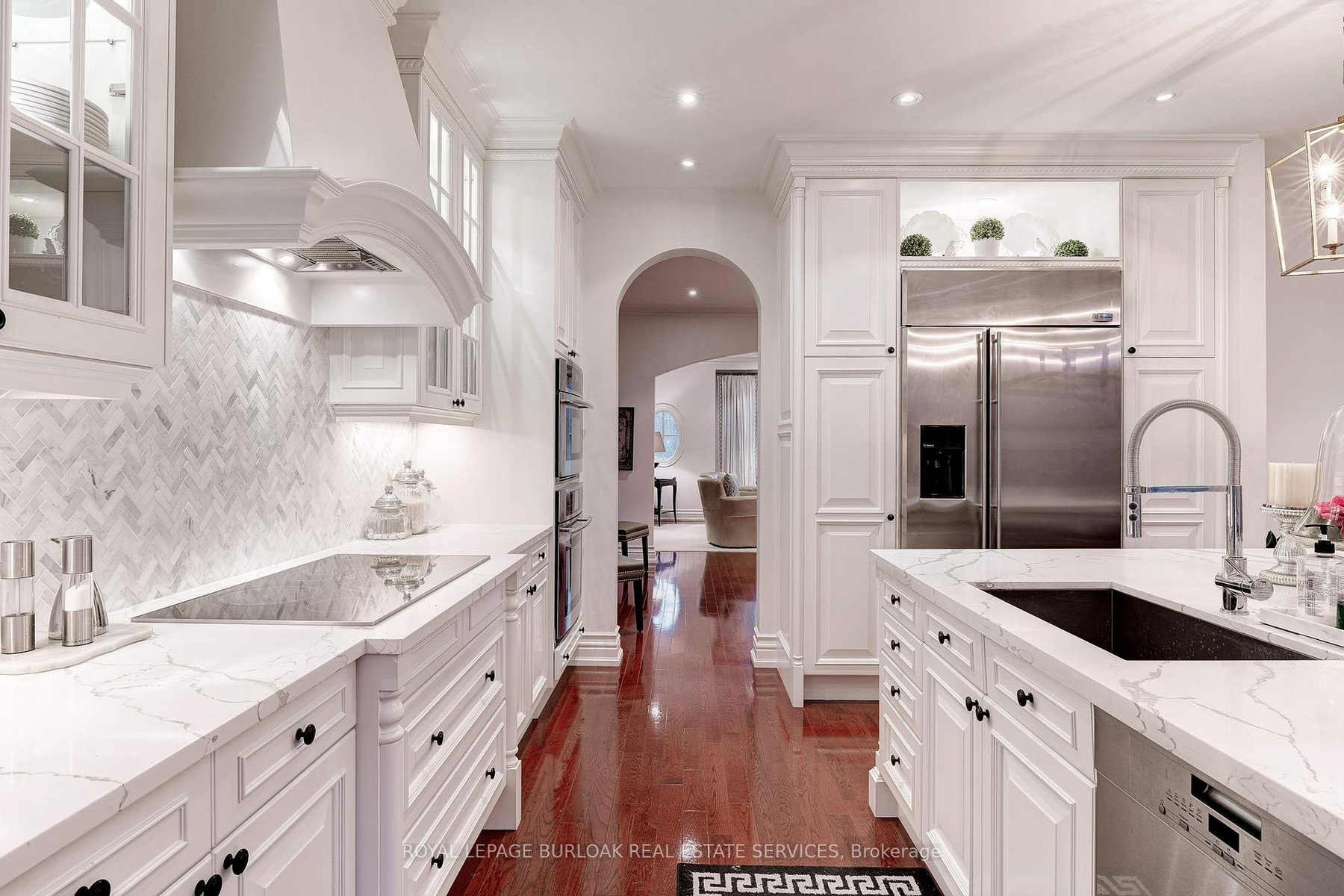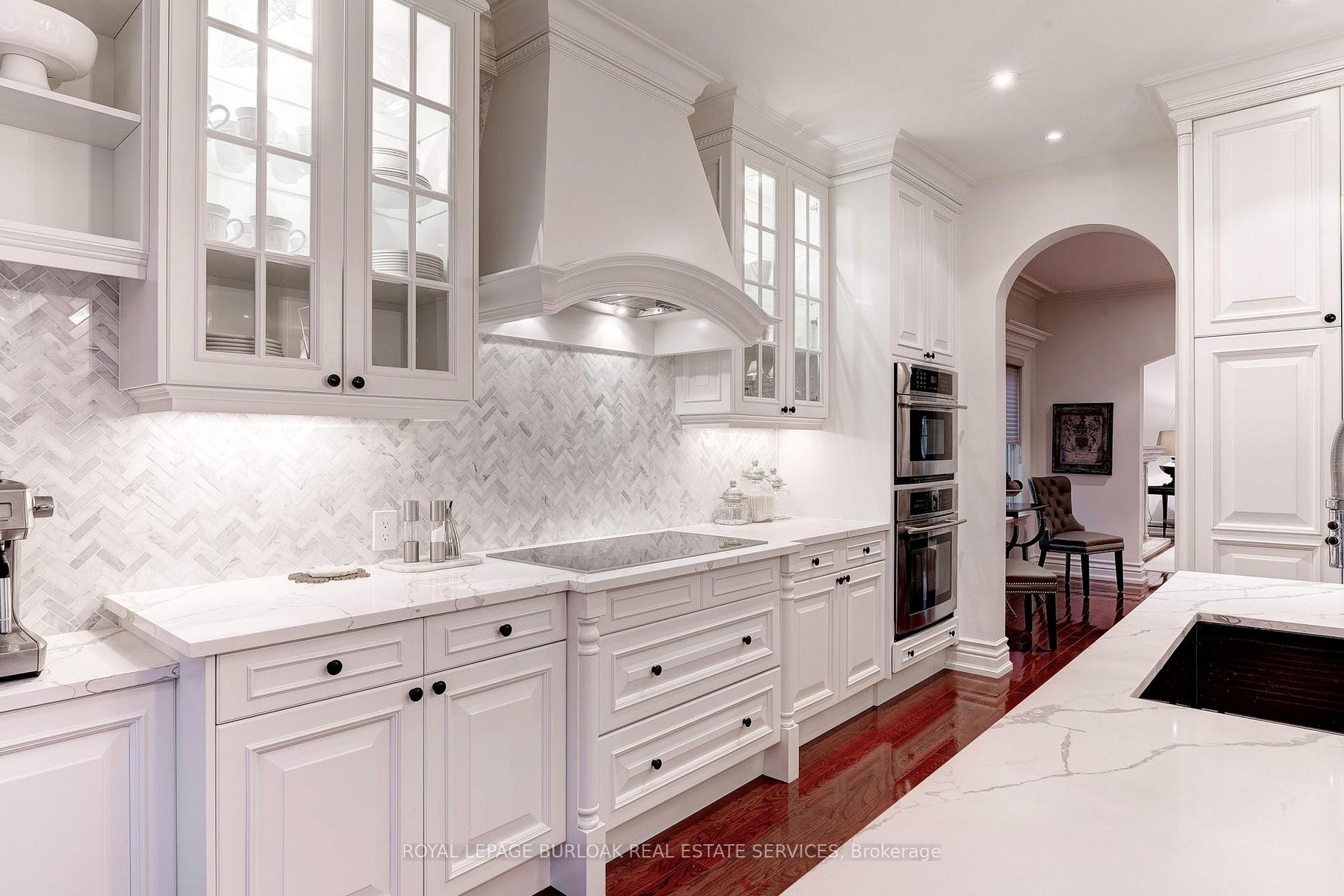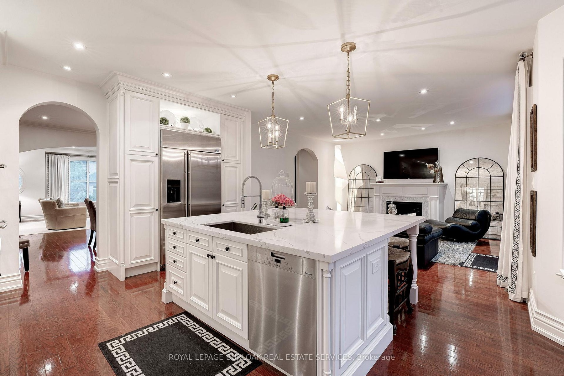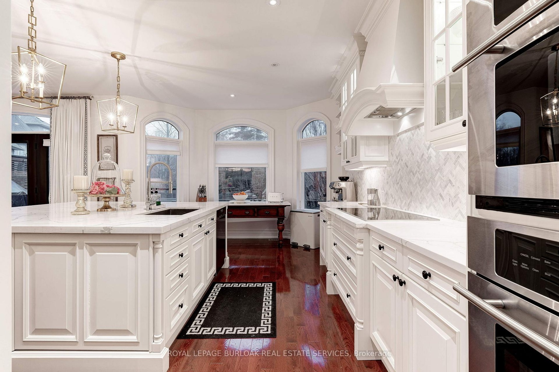 Nestled in River Oak's Woodhaven enclave, this traditional French Provincial home has undergone a complete transformation with luxurious finishes throughout, seamlessly blending romantic charm with upscale contemporary design. Featuring extensive use of natural stone and meticulously manicured gardens, the exterior exudes elegance. Inside, the finely styled interior boasts expansive windows, rich hardwood floors, custom millwork, and arched entranceways. Dual gas fireplaces in the formal living room and family room add warmth and character. The Downsview kitchen caters to culinary enthusiasts with its full-height cabinetry, commercial-grade appliances, and a sizable central island perfect for both meal preparation and casual gatherings. Glass French doors in the family room lead to an upper-level deck, offering a serene setting for outdoor dining. The primary retreat features vaulted ceilings, a wall of windows, a spacious walk-in closet & lavish ensuite. Two additional large bedrooms, luxurious main bath, and convenient laundry complete the stunning second level. The lower level offers a guest suit with living room, large bedroom and 3 piece bath. Additionally the lower level boasts oversized egress windows, heated flooring and interior garage access. With a low-maintenance exterior, including a stone lounge area, upper cedar deck, and perennial gardens, the private rear yard overlooks protected greenspace.