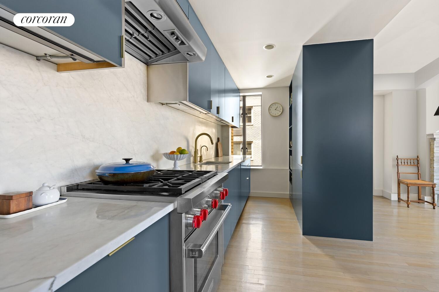 Tucked away at the rear of the building, this pin-drop quiet, high-floor residence offers unobstructed northern views stretching to the Empire State Building and beyond. A gracious entry foyer with abundant storage leads into a sun-drenched, loft-like living and dining area for both everyday living and entertaining. A wood-burning fireplace anchors the airy space.