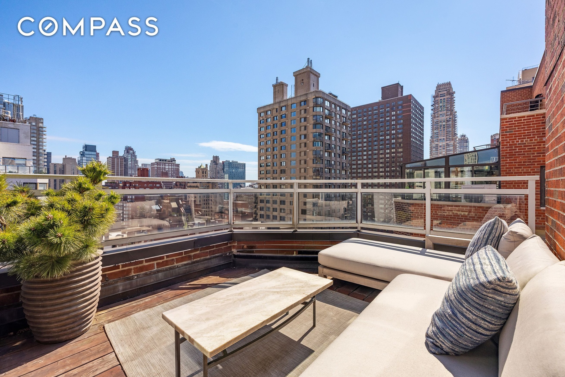 CHIC, SOPHISTICATED PENTHOUSE with two private landscaped terraces and sweeping east and west skyline views.