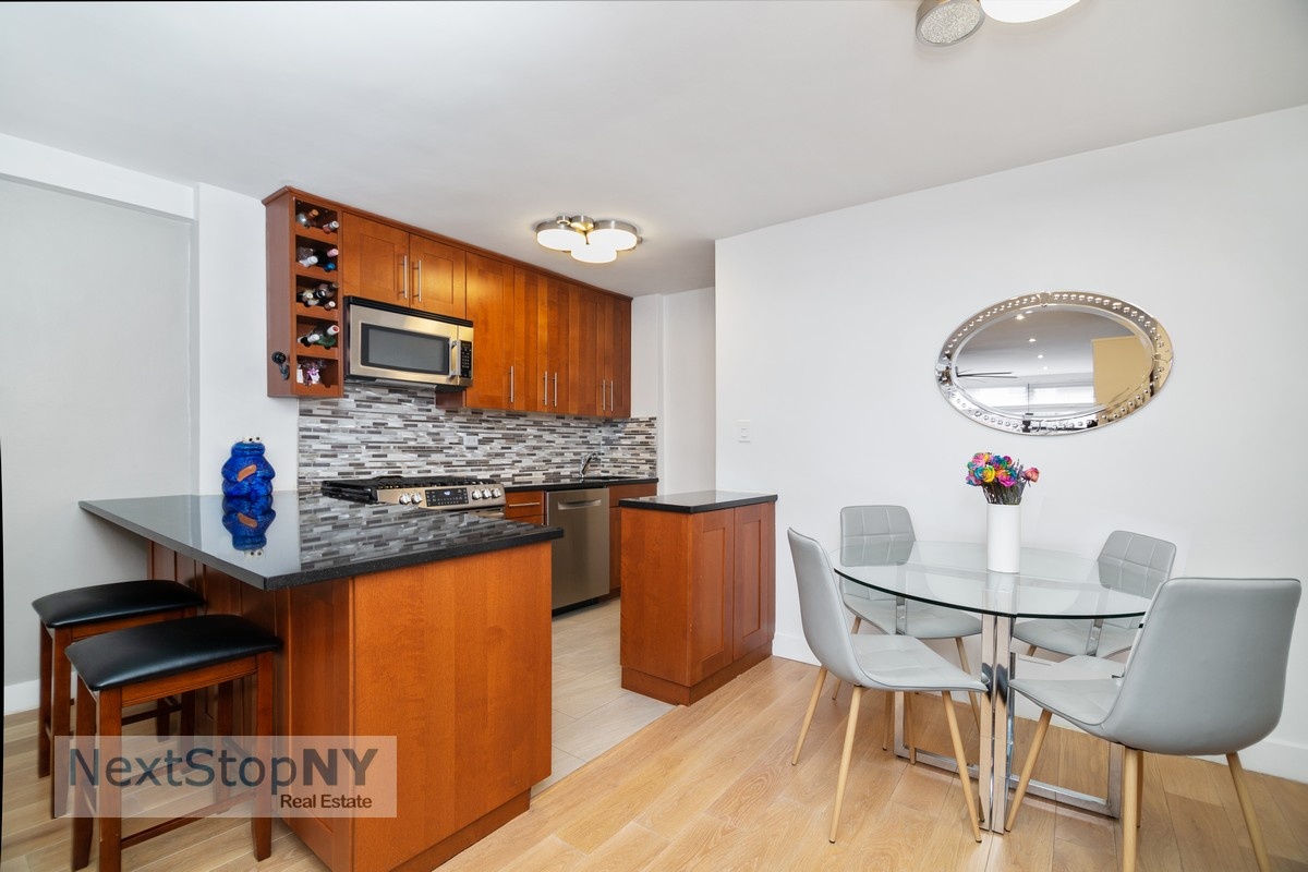 Inside, the apartment opens to a spacious and thoughtfully designed layout, ideal for both comfortable living and entertaining. The open kitchen features top-of-the-line stainless steel appliances, generous counter space, and a sleek, modern design that will appeal to any home chef.
