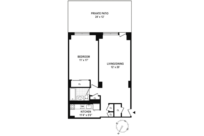 Upon entry, you are greeted with a 26-foot long great room with the backdrop of your own Southeast-facing private terrace (approx. 300 SF). This large room offers distinct spaces for both a spacious living room and comfortable dining area with easy access to the terrace for a peaceful retreat in the heart of Greenwich Village.