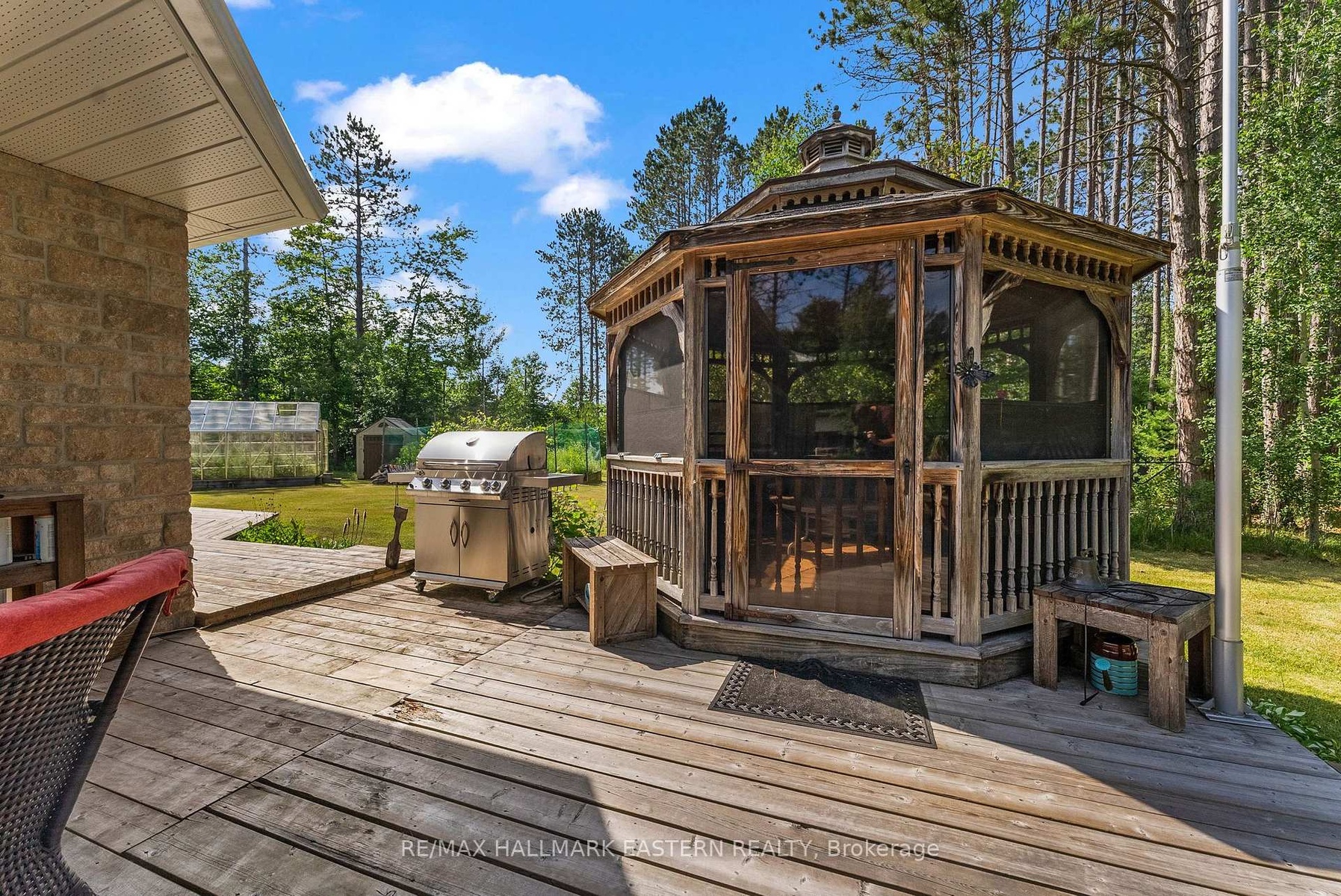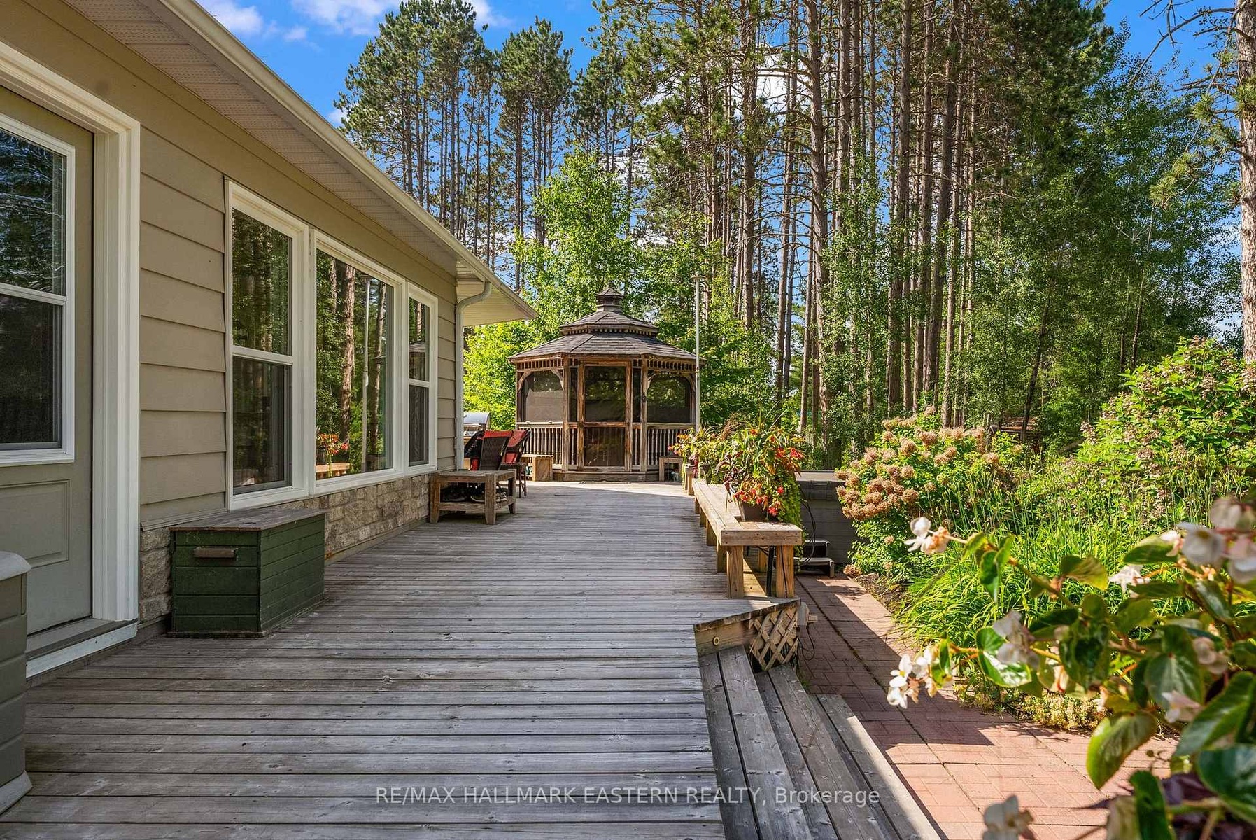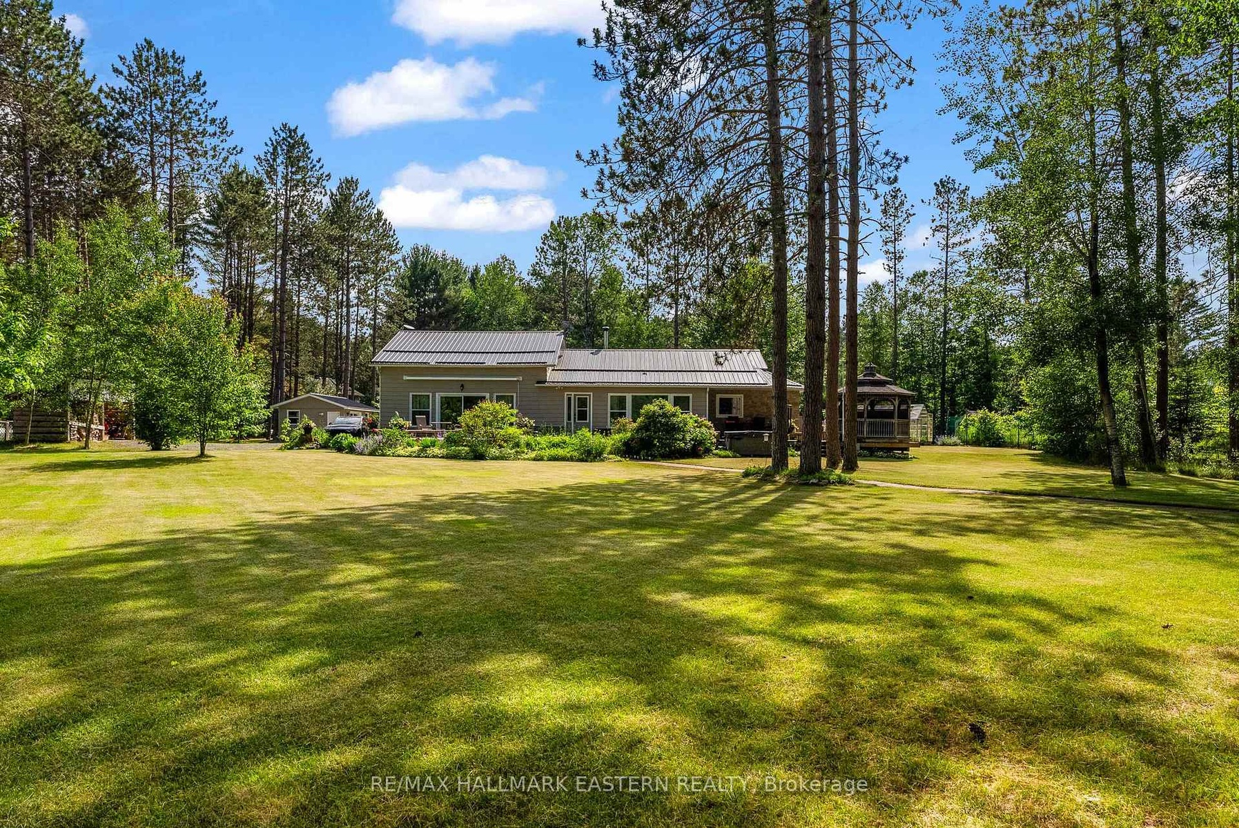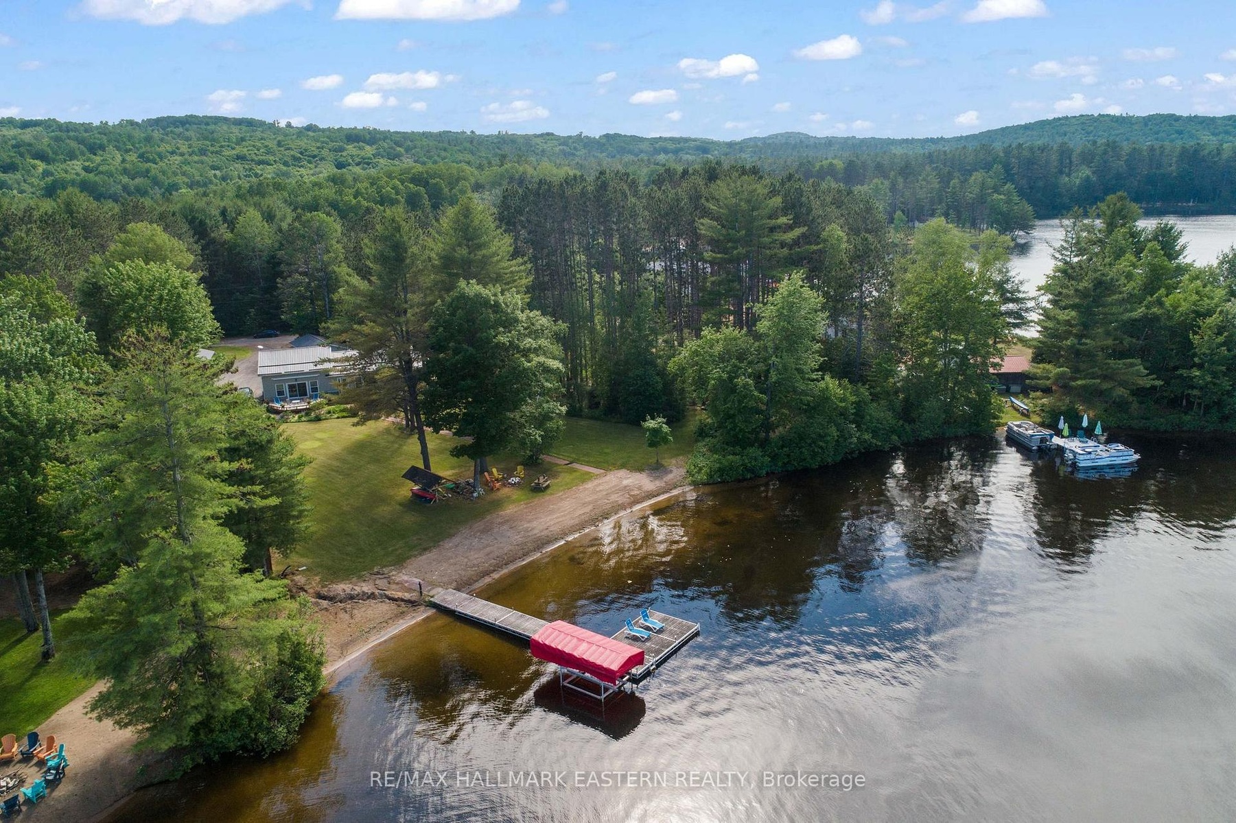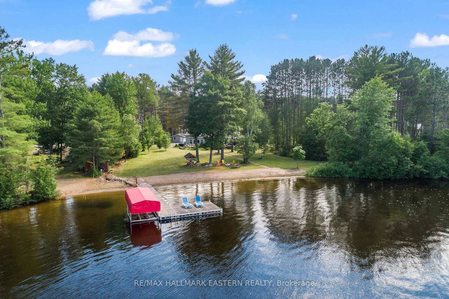 An exceptional turnkey waterfront estate on the prestigious Madawaska River system. Set on 1.85 acres with approximately 240 feet of private shoreline and a purchased shoreline road allowance, this rare offering delivers privacy, long-term value, and effortless four-season access via a municipally maintained road.The extensively upgraded residence spans approximately 1,977 sq ft and showcases a refined blend of comfort and craftsmanship. A thoughtfully designed 28' x 16' addition introduced a custom kitchen and additional bedroom, complemented by a durable metal roof, upgraded siding, and high-quality windows-creating a home that is both elegant and built to endure.Inside, enjoy year-round comfort with multiple heat sources including a propane furnace, propane fireplace, and wood-burning fireplace, supported by backup electric heating and a Generac 8KW system covering most of the home. A reliable shallow dug well provides abundant water, while 200-amp service, Starlink internet, central vacuum, and security cameras ensure modern convenience and peace of mind.Outdoors, the property transforms into a private waterfront sanctuary. A spacious wraparound deck captures tranquil river views, while the hot tub and powered Amish-built gazebo create a resort-like setting for entertaining or relaxing under the stars. A direct propane BBQ hookup adds seamless functionality.Designed for the ultimate waterfront lifestyle, the property includes a private dock and canopy, shore power shed, in-ground irrigation system, fire pit, and a wired modular bunkie ideal for guests. Two insulated garages (one gas heated with garden room), a wood shed, greenhouse garden, and additional cultivated gardens complete this exceptional offering.Move-in ready and meticulously upgraded, this is a rare opportunity to own a luxury waterfront retreat where privacy, nature, and modern living come together.