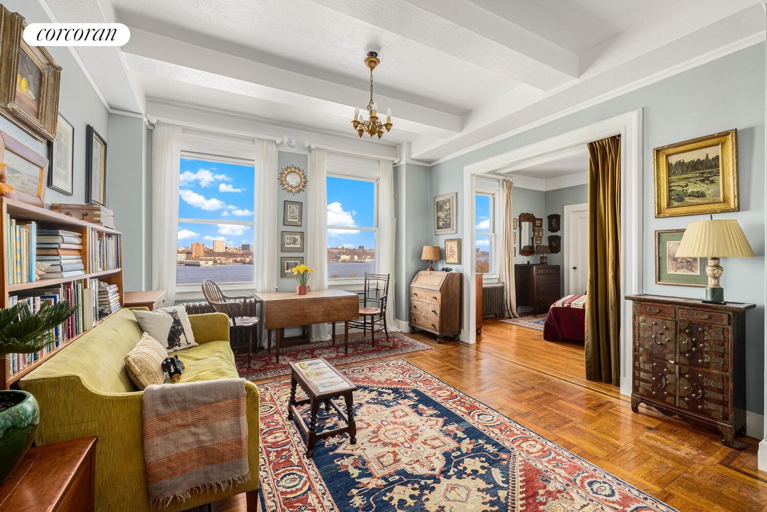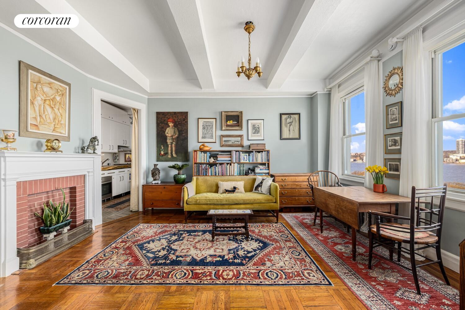 Light-filled with breathtaking views of the Hudson River and Riverside Park, this Upper West Side one-bedroom is a rare find. Residence 1005 seamlessly blends pre-war charm with urban chic. Featuring original hardwood floors, classic architectural details, and high ceilings, the home offers a graceful and functional layout. The walk-through kitchen is inviting, while the decorative fireplace and windowed bathroom adds a nice touch.