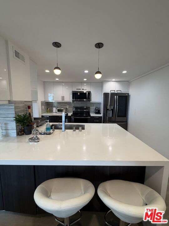 Luxurious, fully renovated condo in the iconic Wilshire Marquis on the prestigious Wilshire Corridor, offering sweeping city views and refined West Los Angeles living. This 2-bedroom, 2-bath + den residence features a bright, open floor plan with abundant natural light and sleek contemporary finishes. The updated kitchen includes a modern stainless steel and black appliance package, marble countertops, and ample cabinetry, flowing seamlessly into a spacious living and dining area.Generous bedrooms provide comfort and functionality, complemented by spa-inspired bathrooms featuring modern vanities and sinks, designer tile work, and a large glass-enclosed walk-in shower with marble-style finishes and built-in bench. Clean lines and high-end fixtures create a refined, contemporary feel throughout.Full-service amenities include 24-hour concierge and security, Olympic-size lap pool, spa, fitness center, outdoor patio, BBQ area, multipurpose room, electric vehicle charging stations, ample guest parking, and three tennis courts, including two rooftop courts.Prime Westwood location with convenient access to UCLA, Westwood Village, Century City, Beverly Hills, dining, shopping, theaters, and major freeways. Vacant and move-in ready. Offered furnished or unfurnished, with optional furnishings available at an adjusted lease rate.
