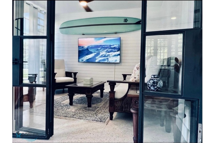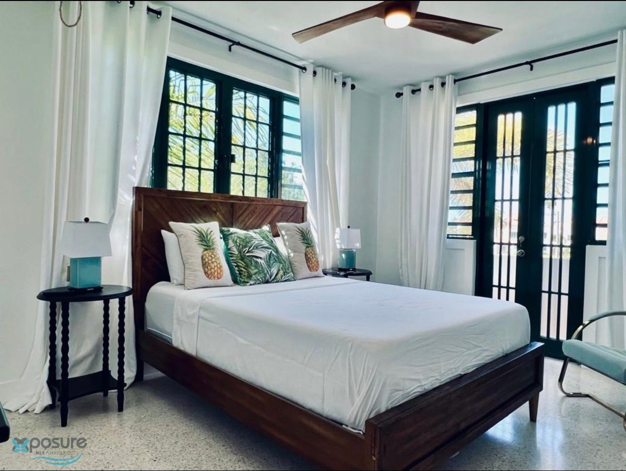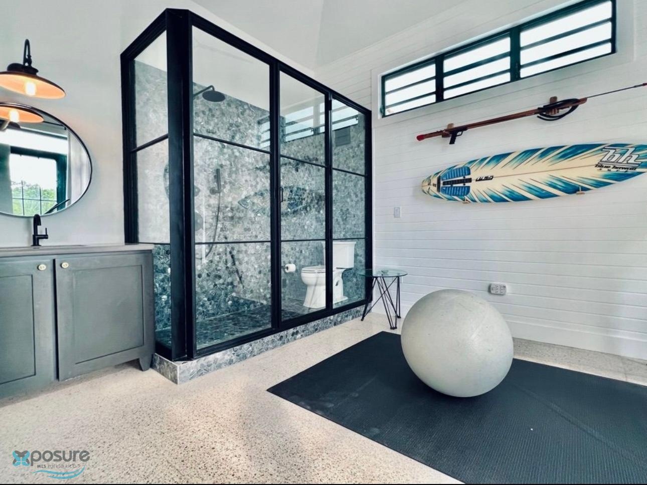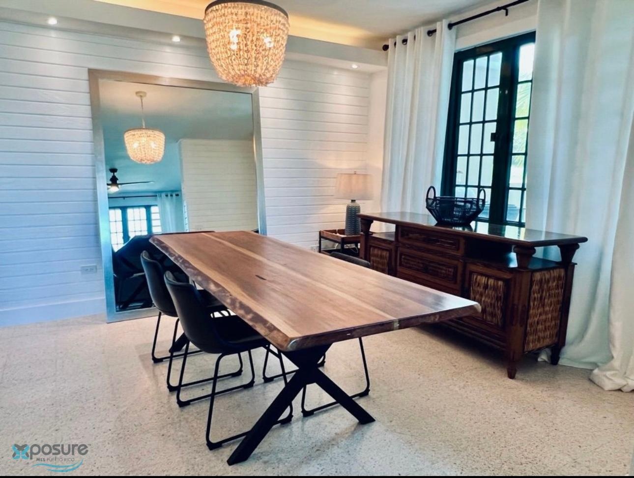Fully-remodeled 3 level, 2,800 sqft townhome has 2 living rooms, full kitchen, 4BR/4BA, with attached 500 sqft private rooftop terrace in the barefoot, bon vivant enclave of Punta Del Mar. Nestled along a secluded stretch of sandy beach lined by world-class waves amidst the coconut trees with private beach access. The home is equipped with 2 central AC and additional 2 mini-splits, new GE Cafe appliances, memory foam mattresses, GE washer/dryer, Apple TV, WiFi and generator. The space Gypset (Gypsy+Jet set) is wanderlust meets height of sophistication. Gypset is the design mission of this recent fully remodeled townhouse within this unique bon vivant Rincon community. This is one of a kind remarkably designed space blending laid-back luxury, smart upscale furnishings with a Bohemian twist and the necessities of modern comforts. Fully-equipped kitchen with top of the line GE Cafe gas range/oven, dishwasher, refrigerator, mini-beverage fridge, VitaMix, Nespresso machine and capsules, ample cabinet spaces with large Quartz countertop and peninsula workspaces. Entire-house water filter with an additional reverse-osmosis drinking water system. Well proportioned living room with cozy sofas for gatherings and lounging. Local artist's masterpiece on display is an 8 person, 2-inch thick slab, 7ft long table salvaged and crafted from a fallen Puerto Rican teak tree. Enclosed TV room with large flatscreen LCD TV, high speed internet and Apple TV. First floor is cooled by brand new central AC and 2 ceiling fans. Master bedroom and bath are equally stunning, complete with double sinks on Quartz countertop, large 2-person double showers with top-of the line Brizo fixtures lined with artisan tiles. The master also has a spacious walking-in closet with proper lighting. All bedrooms have brand new medium firm memory foam mattresses from king-size in the master bedroom, queen size in bedroom 2 and another queen size in bedroom 3. 3rd level is a yoga studio and workout room with en-suite full bathroom. It is equipped with a Swedish ladder, yoga ball, 8x5 yoga mat and brand new Teeter inversion table. Studio opens to a 500 sqft private roof top terrace with lush greenery and ocean breeze. High speed fiber-optic internet meshed wifi through-out. Entire home is cooled by 2 central air ACs with NEST control and 2 additional mini-splits units. Backup power is supplied by 22KW LP Honeywell generator connected by 120 gallon liquid propane tank for rare outages. Entire-home water-filtration system with additional Reverse-Osmosis drinking water system. All waterworks by Brizo. Rincon is considered a surfing mecca and one of the America's prime wave locations. Rooted in the rich and warmth of Puerto Rican culture, this small beach town It is native to quint boutiques, breezy oceanfront bars, healthy juice and acai bars, both traditional traditional and nouvelle cuisine eateries, yoga studios, abundance of land and ocean activities and a signature nightlife..