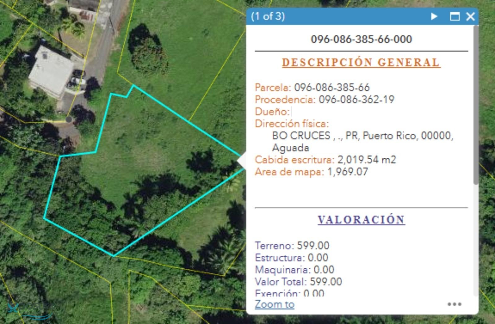Property ID: F-0687 Spacious Lot in Bo. Cruces, Aguada. Discover this excellent investment opportunity in the quiet, green Barrio Cruces neighborhood of Aguada, ideal for those seeking privacy, a connection with nature, and a relaxed environment. This lot measures 2,019.54 square meters, offering the perfect space to build your dream home or develop a custom project. The property is easily accessible, surrounded by natural areas, with access to a stream and beautiful mountain views that create an atmosphere of peace and connection with the environment. Its location allows you to enjoy the tranquility of the countryside without being far from essential services and the town center of Aguada. An excellent alternative for both residential use and investment, in an area with great potential for appreciation. 18.347696, -67.215202..
