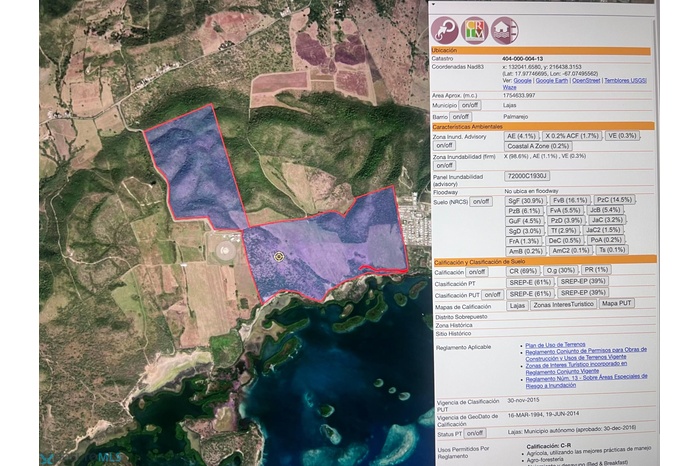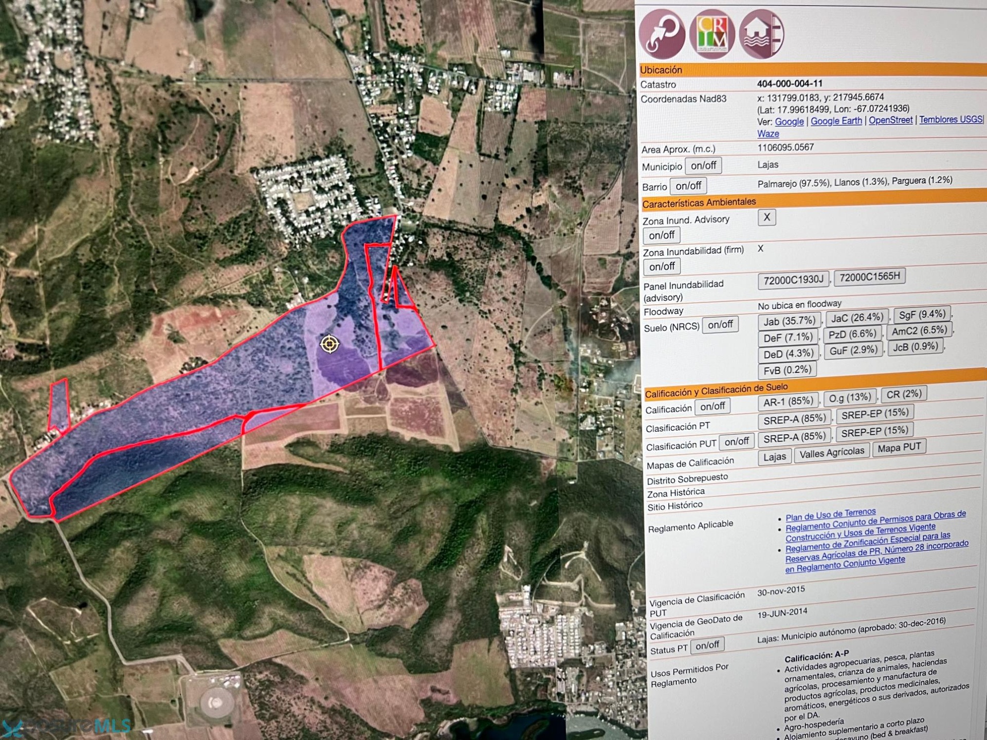 NEW PRICE!! 1,235.46 ACRES OR 485.48 HECTARE FARM, PR-303 Highway. IT HAS 54 DEEDS TO FIVE-ACROD LOTS ON THE ROADS, WHERE A HOUSE CAN BE BUILT. ZONING: 27% AR-1 133.90 hectares: Production of crops, forage, and forests. Raising livestock, poultry, domestic animals, and hunting. Processing and packaging of agricultural products. Sale of products harvested on the farm. Grain mills, composting facilities. 41% OG 198.63 hectares: General Conservation. 31% CR: Recreational facilities, agriculture, specialized lodging, buildings according to the nature of the activity to be carried out. Housing for 1 or 2 families. One percent of mangroves will be designated for passive recreation that does not involve cutting, filling, or dredging. ROAD 303 NEXT TO LAJAS FEDERAL AEROSTATO..