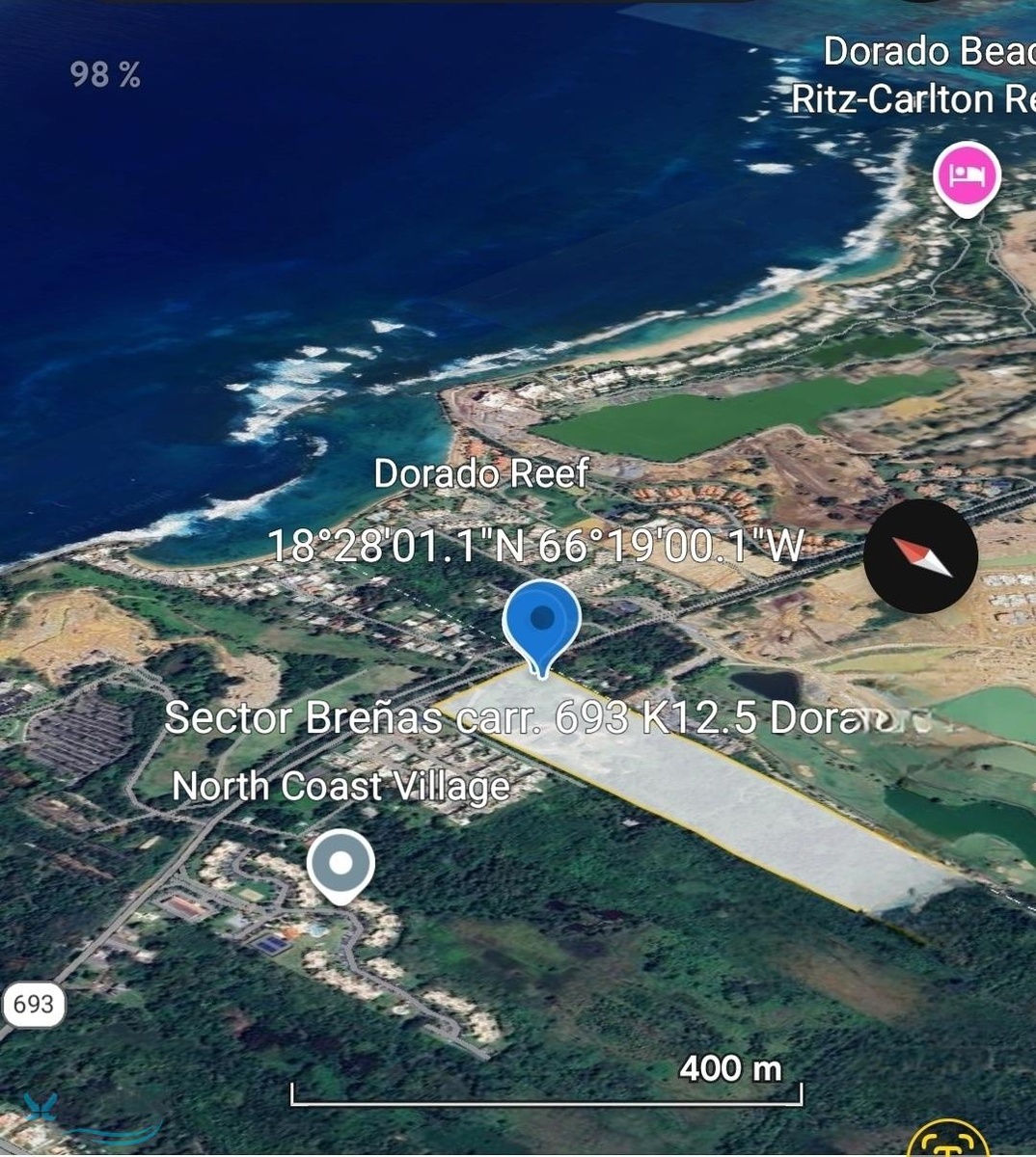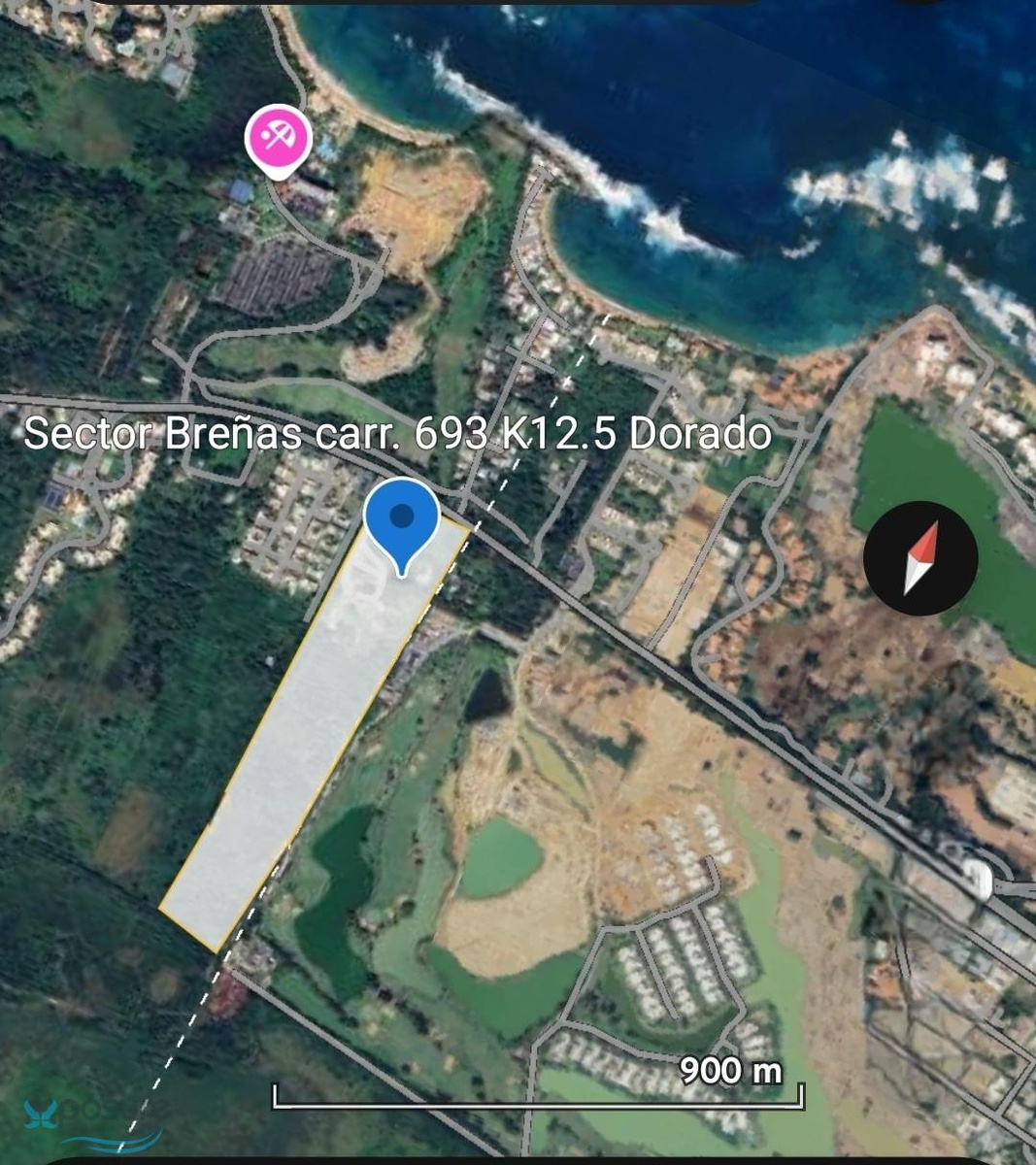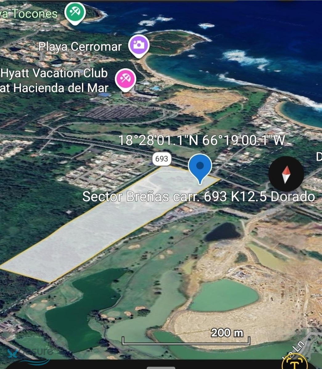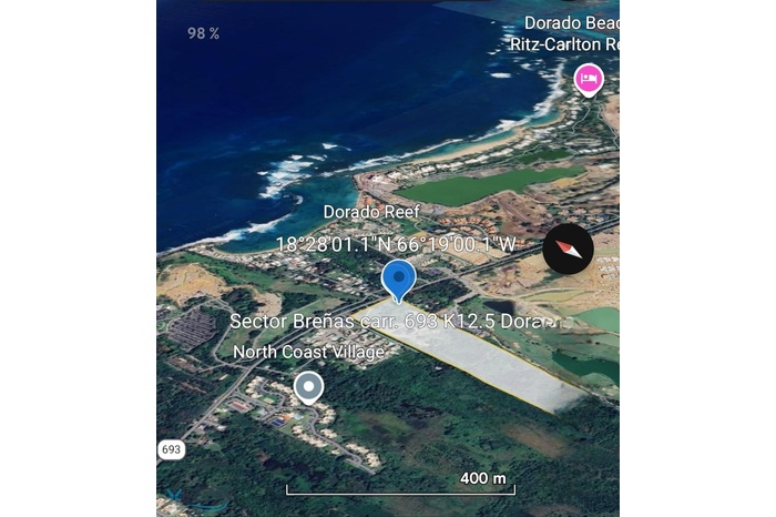 Ideal for tourist or commercial development. Breña Sector, Highway 693, Dorado. A 32,1192 acres estate is offered for sale. The property is strategically located in Dorado, across from the Dorado Reef accommodation and a short distance from the Hyatt Vacation Club at Hacienda Del Mar, surrounded by high-end residential developments, hotels, and apartment complexes. For additional information about this property, please contact us..