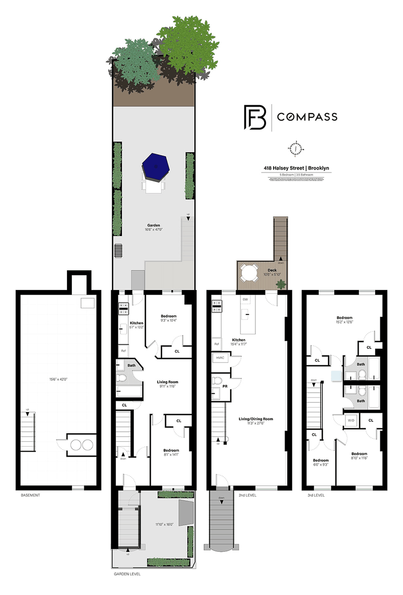 Welcome to 418 Halsey Street. This fully renovated two-family townhouse offers a harmonious blend of modern design and classic elegance, delivering a luxurious living experience in Bedford Stuyvesant, one of Brooklyn’s most sought-after neighborhoods. Configured as an owner's duplex over a garden rental with central heat and AC in both units, this home is the perfect fit for a buyer looking to offset their mortgage with solid rental income.