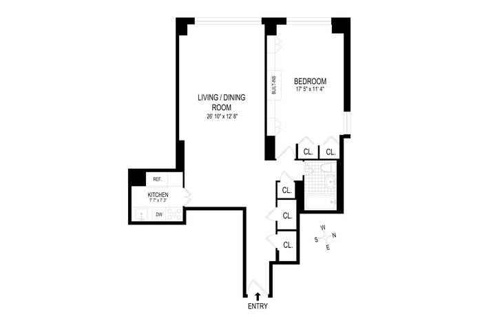 This spacious one bedroom home showcases an inviting entry hall with two closets. The oversized West Facing living/dining area has great light. The gracious bedroom has both West and Northern Exposure and can easily accommodate a King Bed. The kitchen has Wood cabinets and granite countertops and is is equipped with Frigidaire stainless steel appliances. The apartment has wood floors throughout. Enjoy the light and city views from both the living room and the bedroom. The apartment has lots of storage with three closets in the hallway and a large double in the bedroom.