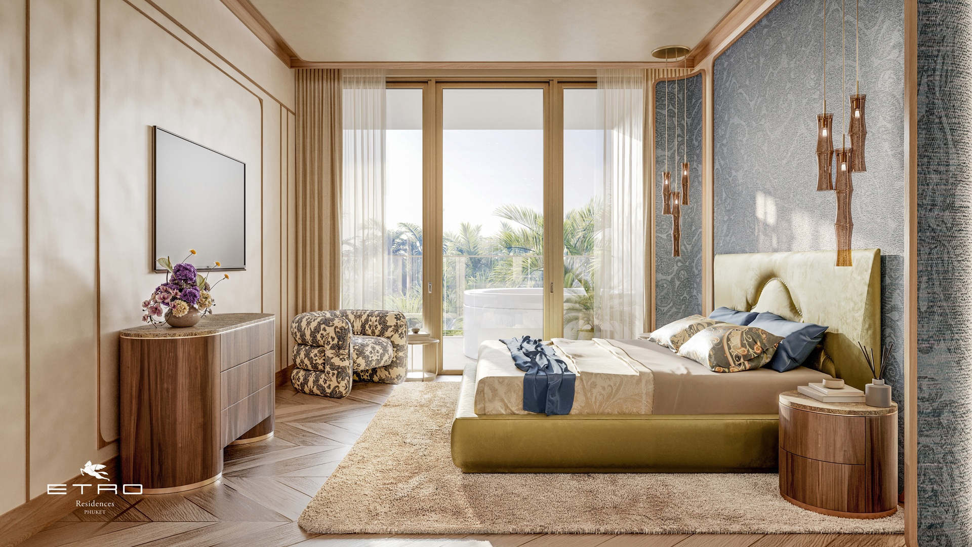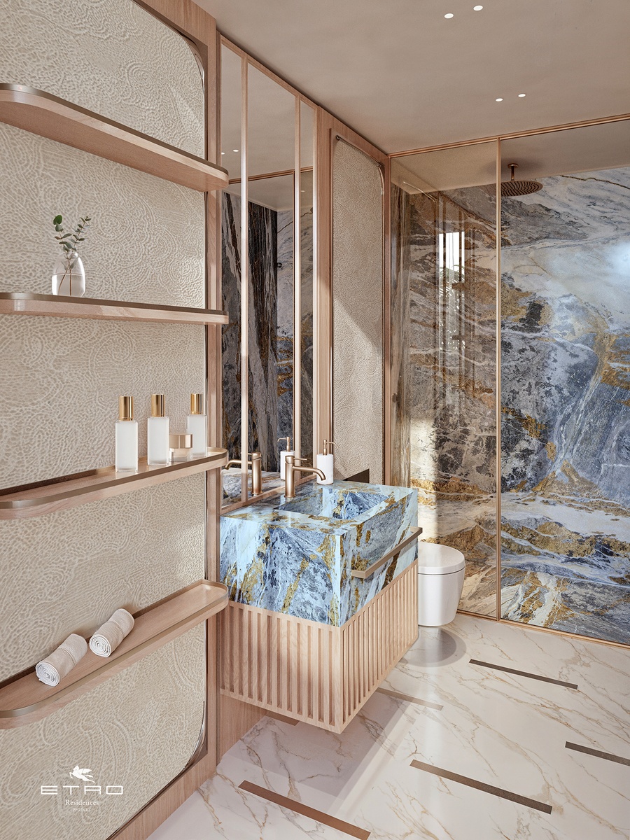Marble-clad lobbies, master suites adorned with ETRO’s iconic paisley motifs, and bold, expressive prints create a design language rooted in creativity, individuality, and timeless elegance.