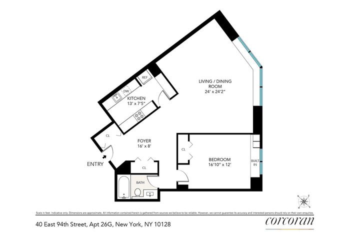 Expansive wrap-around views and light fill this beautiful 1BR/1BA Carnegie Hill condo. The unusually large entry and living room are an unexpected pleasure in a Manhattan one bedroom apartment. There is a large and comfortable bedroom and excellent closet space throughout. The spacious galley kitchen provides a great deal of storage, as well as options for new layouts. This apartment comes with a storage unit which is 4x4x4.