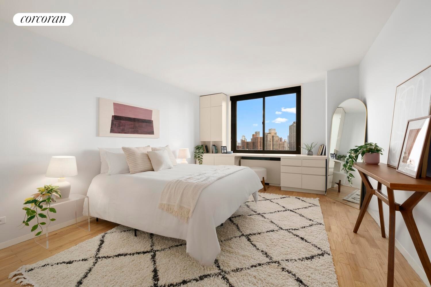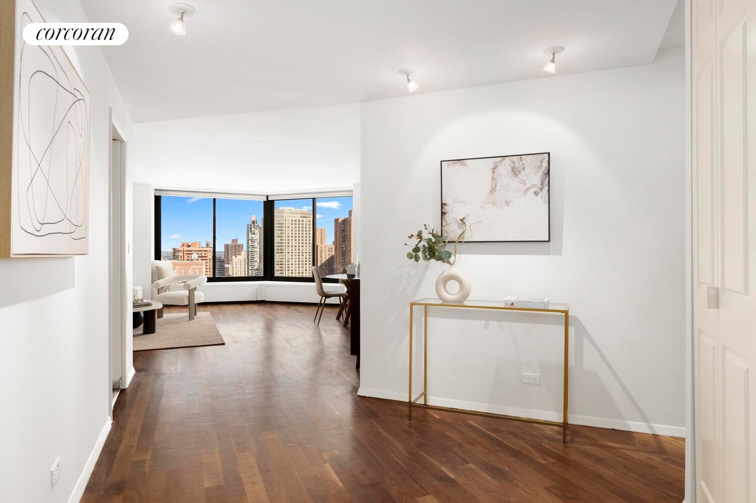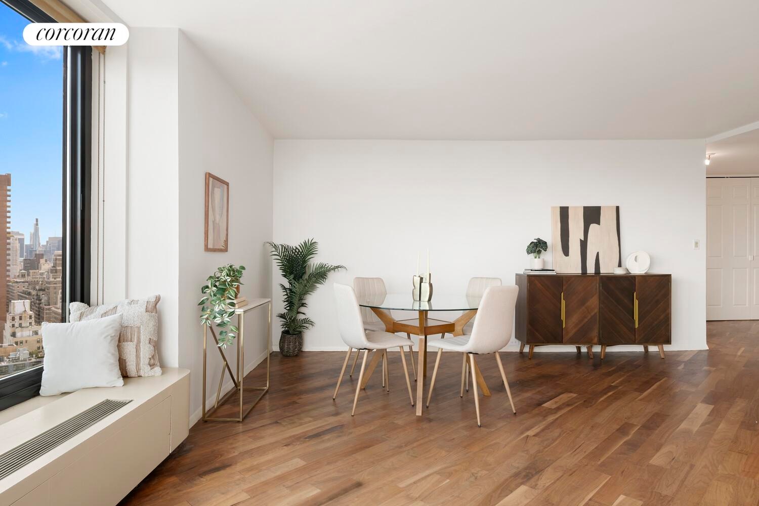 Expansive wrap around views and light fill this beautiful 1BR 1BA Carnegie Hill condo.