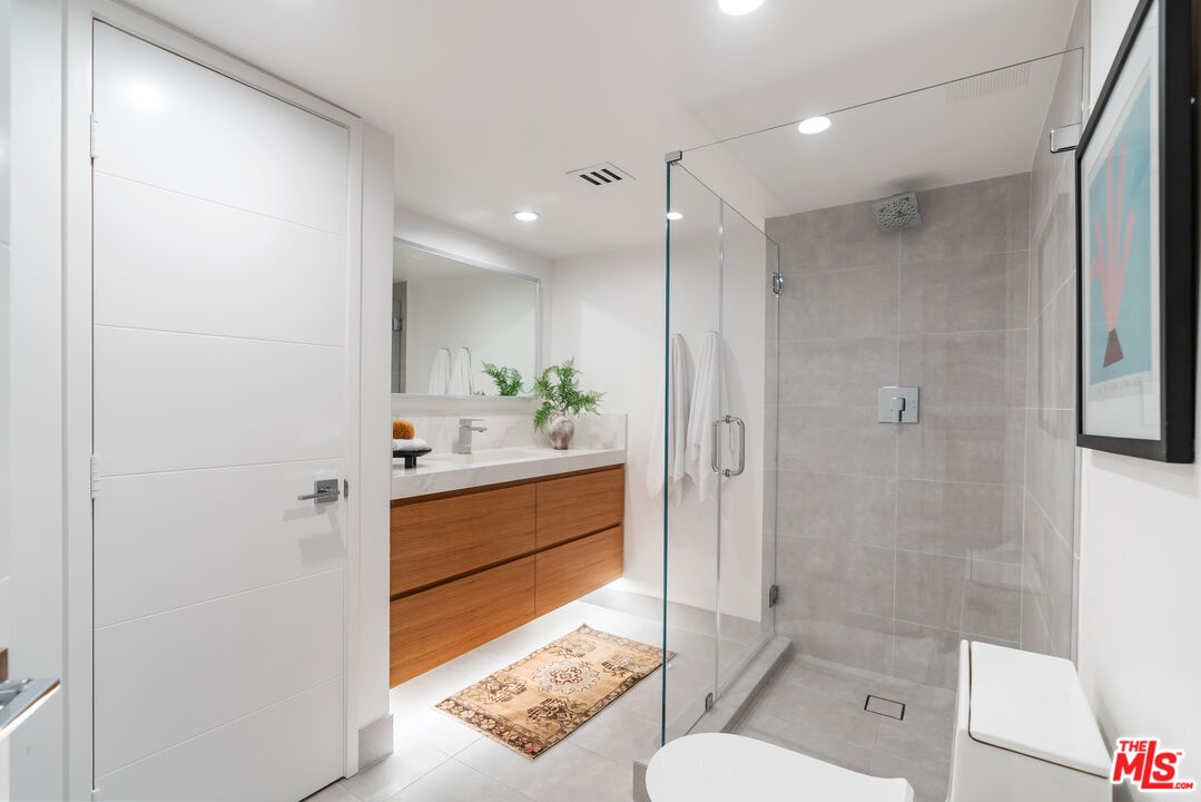 Set high in the hills above Beachwood Canyon, 2759 Creston Drive is a fully renovated Mid-century modern retreat with expansive sunset, city, jetliner and ocean views that define the home at every turn. Spanning approximately 3,058 square feet, this 4-bedroom, 4.5-bath residence underwent an approximately $1M renovation completed in 2024, preserving its architectural character while introducing refined, organic, warm finishes throughout. Floor-to-ceiling glass doors open to more than 1,500 square feet of double-layer decks, creating a dramatic indoor-outdoor living experience centered around a panorama. The main level begins with a massive mahogany pivot front door and opens into spacious living and dining spaces, a powder room, the primary suite and a showpiece chef's kitchen appointed with Wolf, Sub-Zero and Cove appliances. The lower level offers a second primary-style suite, with a soaking tub looking over the vista. A fourth ensuite bedroom, a secondary living area with a private entrance, and a Sub-Zero kitchenette, provides exceptional flexibility for guests, an office, studio or theatre. Interior finishes include wide-plank French white oak floors, custom white oak floating vanities with integrated stone sinks, quartz surfaces and a striking wine display wall. Recent improvements also include a rebuilt deck structure, newer HVAC systems, newer 75-gallon water heater, newer washer and dryer, Lutron Palladium motorized shades, smart home features, mature landscaping and gated, locked entry before all exterior doors for added privacy and security. Just moments from Hollywood, Los Feliz, Silver Lake, West Hollywood and the 101 freeway, 2759 Creston Drive offers a rare combination of design, privacy, and truly exceptional view-driven living. Enjoy the tranquil canyon ambiance with the local charm of Beachwood Canyon, the Hollywood Dell, Franklin Village and nearby hiking trails. A rare opportunity to own a turnkey haven in one of Los Angeles' most desirable neighborhoods. Conveniently close to renowned dining and outstanding shopping. Create your California lifestyle.