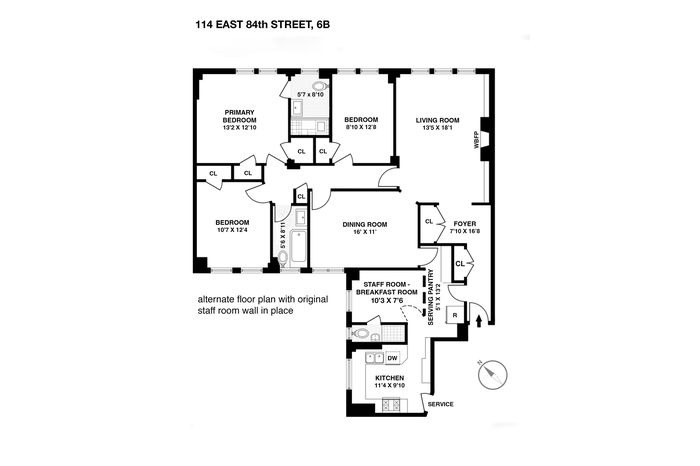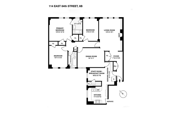 Welcome to this stunning and bright, turn-key pre-war classic seven. The home offers three graciously proportioned bedrooms and three full bathrooms, an expansive living room with a fully functioning wood-burning fireplace, a formal dining room, currently configured as an entertainment/media room, and a staff room with en-suite bath, currently configured as a breakfast room and easily convertible to a fourth bedroom. Ceiling heights exceed 9 feet, enhancing the sense of space and light throughout.