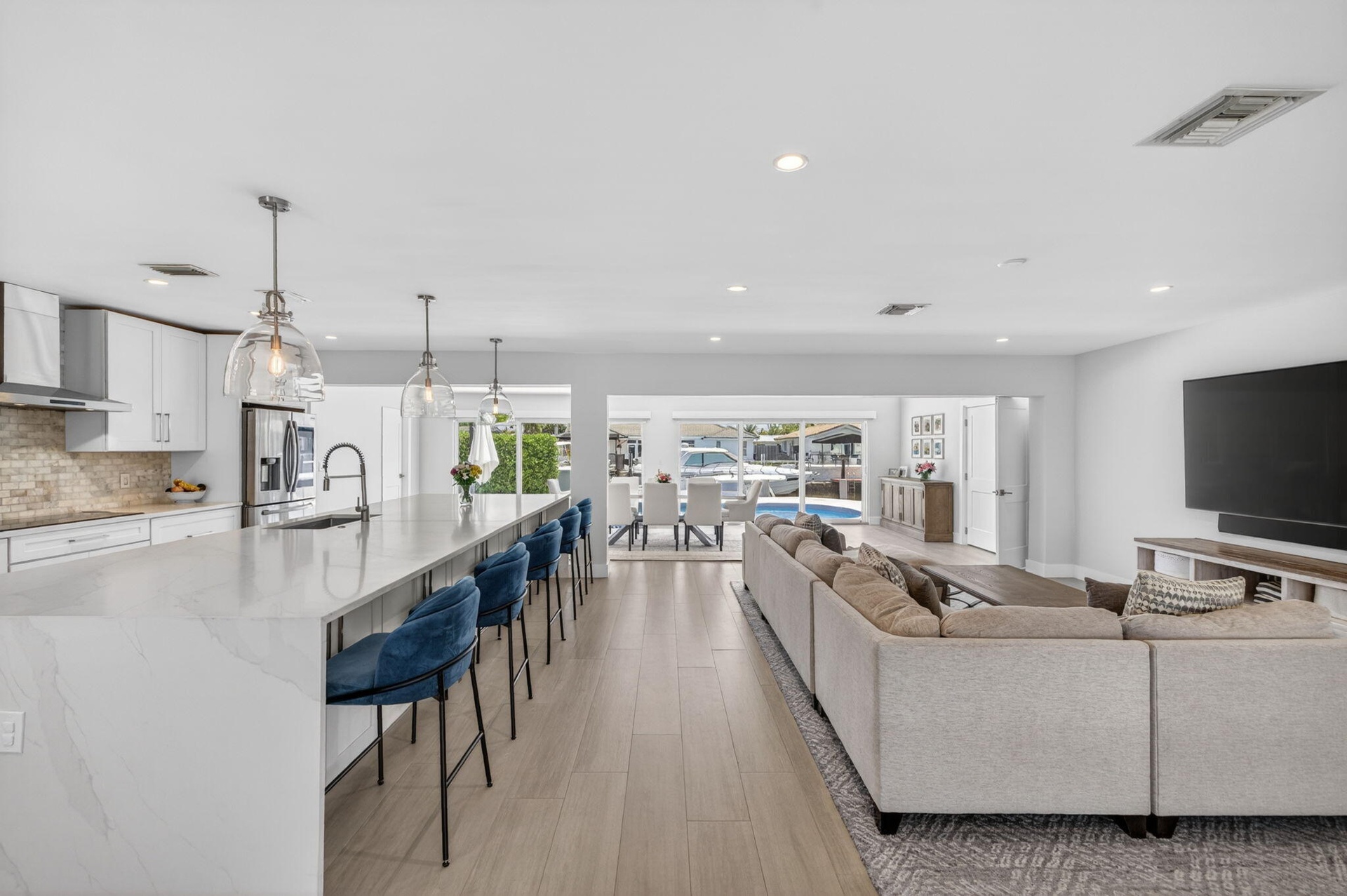 Stunning, completely reimagined, remodeled and repurposed waterfront residence in prestigious Venetian Isles, offering 60 feet of deepwater frontage with no fixed bridges and direct ocean access. This sophisticated 3BR/3BA split floor plan showcases an open-concept design with refined coastal finishes, a designer kitchen, and spa-inspired baths. Some of the many upgrades include a new roof, impact glass, new driveway and pool deck pavers, an expansive family room with water views and seamless indoor-outdoor living. Enjoy a private pool, new dock with electric, and serene water views. Perfect for boating enthusiasts and entertainment alike. Located in the highly sought-after city of Lighthouse Point, known for its safety, premier boating lifestyle, and exceptional coastal living.