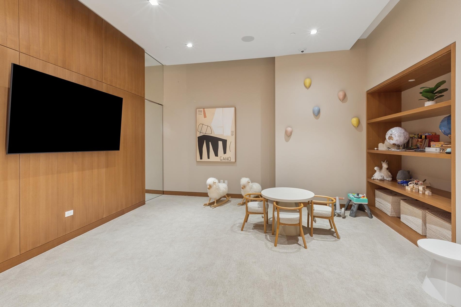 611 West 56th Street delivers a comprehensive amenity experience, including a Technogym Fitness Room with equipment by Antonio Citterio, dedicated Yoga and Boxing Rooms, men’s and women’s changing rooms with showers and illuminated steam rooms, a Children’s Playroom, a Media Room with billiards, and an elegantly furnished Residents’ Lounge by DDC and Minotti with a catering kitchen. A landscaped garden by M. Paul Friedberg, featuring original works by Álvaro Siza, anchors the building’s serene outdoor environment.