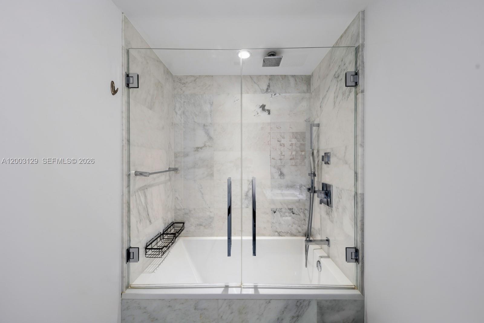 An oversized one-bedroom, 1.5-bath sanctuary, Residence 903 at Echo Brickell, designed by Carlos Ott and developed in partnership with JDS and PMG, delivers a level of scale and finish rarely found in Brickell. Spanning over 1,200 SF, the residence has been thoughtfully reimagined into a true one-bedroom retreat, featuring an expansive living area and a separate den that effortlessly functions as a private office or media lounge. Interiors are rich in texture and detail, highlighted by Venetian plaster walls, sleek marble flooring, custom ceiling lighting, and a fully integrated smart home system with wired audio and power shades throughout. The kitchen is both sculptural and functional, outfitted with premium Wolf and Miele appliances, designed for both everyday living and elevated entertaining. A defining feature is the 600 SF terrace, an outdoor extension of the home rarely seen at this scale in Brickell. Complete with a built-in BBQ, it invites seamless indoor-outdoor living, set against warm sunset light and open Biscayne Bay views. Echo Brickell offers a boutique, white-glove lifestyle with a full-floor spa and wellness level, state-of-the-art fitness center, and resort-style pool. The 44th-floor sky lounge is a true showpiece, with sweeping views of Miami Beach and a one-of-a-kind rooftop pool. Residents enjoy 24-hour concierge, complimentary pet walking, and chauffeur service.