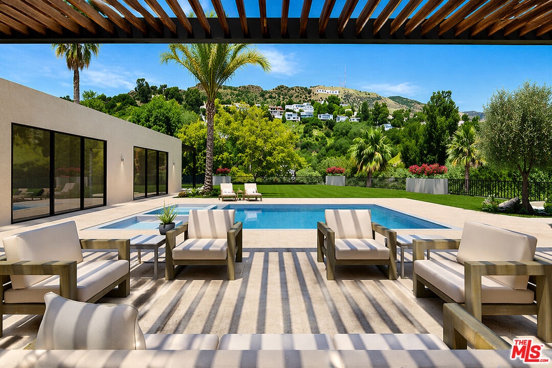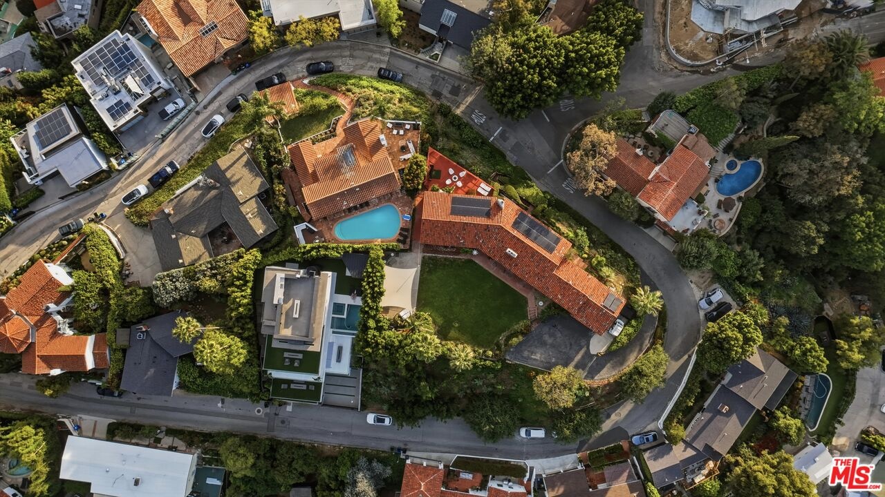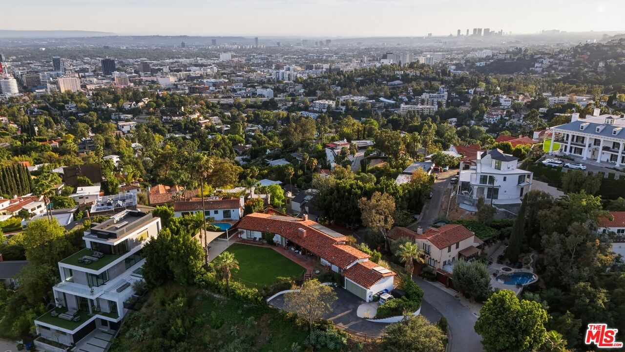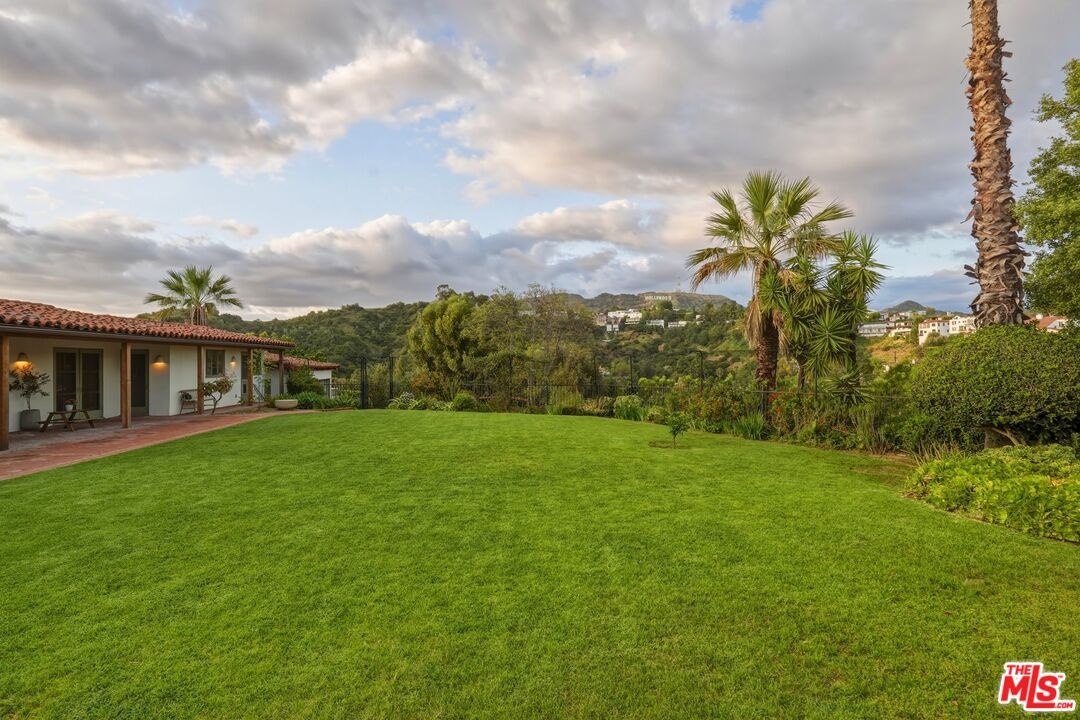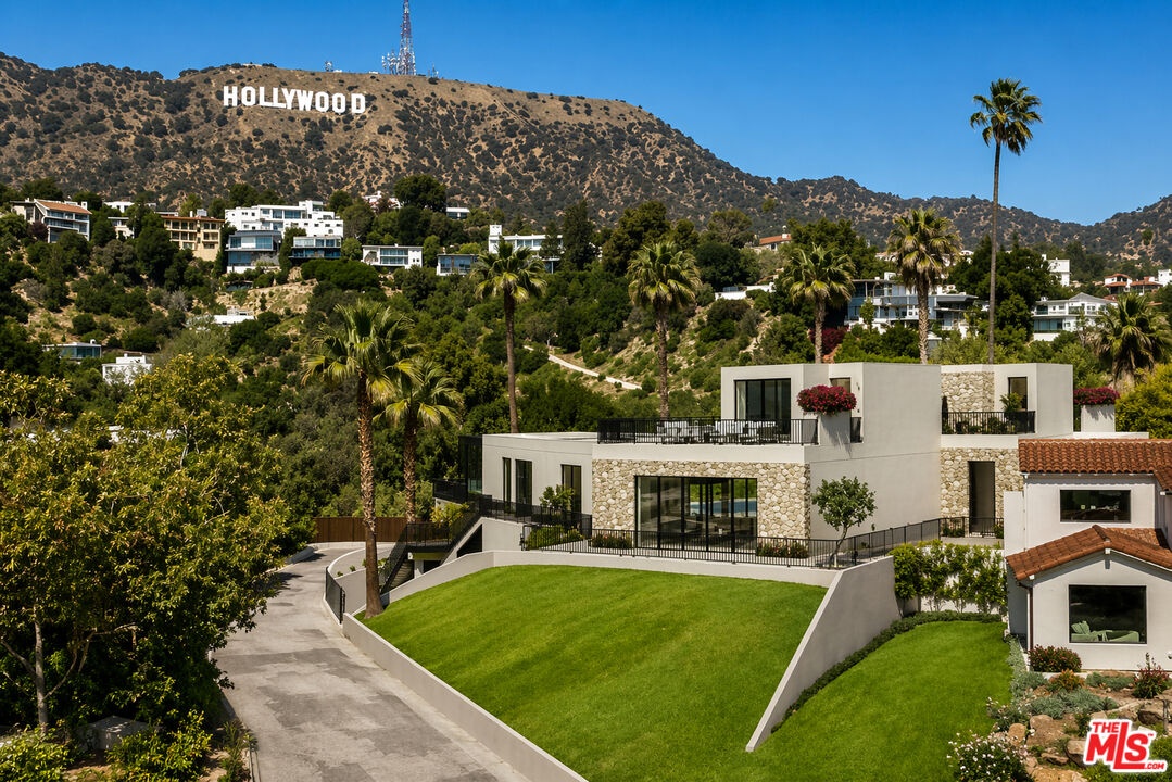 Prime development opportunity in the heart of Beachwood Canyon. This rare offering comes with fully approved RTI (Ready-To-Issue) plans and permits for a striking approximately 9,600-square-foot modern estate, along with the option of an exemption allowing for an additional 2,000 square feet of living space, creating an opportunity to build a truly significant architectural residence in one of Los Angeles' most iconic hillside enclaves. Perched atop a rare, mostly flat half-acre promontory, the property captures breathtaking, unobstructed panoramic views stretching from the Hollywood Sign to Catalina Island, with sweeping vistas that showcase the full majesty of the Los Angeles skyline and coastline. The existing 1950's California Ranch home enjoys extraordinary privacy as it's elevated above the neighbors. Additionally, as the property is located on a loop, there is minimal traffic, creating an exceptionally serene setting that is only minutes away from the city. The residence consists of three bedrooms and two full bathrooms plus office or flex space. All bedrooms have double doors that open to the exterior showcasing either the city and ocean views or the flat lawn and views of the Hollywood sign and surrounding nature preserve. The additional office also has access to the lawn for blending business and pleasure. The main bedroom contains an en suite and double closets. Additionally, the third bedroom has its own cozy fireplace. The home maintains original charm and character in the beautiful living room with a high beamed wood ceiling and hardwood floors. The central fireplace creates an intimate, relaxing space further enhanced with the remarkable city views. The dining room connects directly to the kitchen with two separate preparation tops and Spanish tile floors. The laundry room is conveniently located off of the kitchen. Outside, the front of the home and patio has its own stepped pathway leading down to the street, while in the rear, there is an exterior fireplace with accompanying gas BBQ grill facing the flat grass lawn and spectacular views of the Hollywood sign and hills. The approved plans have been thoughtfully designed to maximize the site's extraordinary 360-degree views, creating a dramatic modern estate that fully embraces its remarkable setting. Accessed via a private driveway, the offering becomes even more compelling with two APNs included, presenting the unique potential to develop two separate residences: an exceptional opportunity for builders, developers, or end users seeking to create a landmark compound in the Hollywood Hills. The existing residence allows the next owner to occupy immediately or move forward with the approved plans or explore alternative development possibilities.