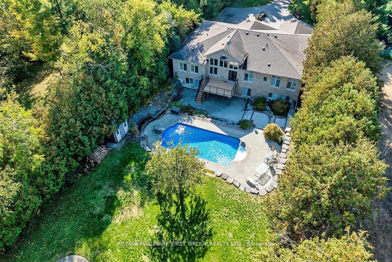Macedonian Village Opportunity - Bungalow Living on a Premium Conservation Lot, this custom-built bungalow offers exceptional space, privacy, and long-term versatility on a premium 102.48 ft x 352.51 ft lot backing onto the natural beauty of Heber Down Conservation Area.Designed for both everyday comfort and multi-generational living, the main level features four spacious bedrooms, each with its own en-suite and walk-in closet, along with 10-ft ceilings, new engineered hardwood flooring, and fresh paint throughout (2025). The great room impresses with a 16-ft cathedral ceiling and gas fireplace, while the updated kitchen showcases stainless steel appliances, waffle ceilings, crown moulding, and California shutters.The primary suite is a true retreat, complete with a custom ceiling, walk-in dressing room, and a 5-piece en-suite overlooking the private backyard and conservation setting.The finished walk-out basement adds outstanding flexibility with three additional bedrooms, a gym, two large recreation areas, a gas fireplace, and a rough-in kitchen ideal for extended family, in-law potential, or future customization.Additional highlights include a main-floor office, laundry room, central vacuum system, and an attached garage with workshop and 60 Amp service perfect for a hobby space, studio, or future golf simulator.Outdoors, enjoy a private backyard oasis with an in-ground pool featuring an updated liner, heater, and UV system (Aug 2025), along with interlocking landscaping and direct access to nature.With its timeless brick, stone, and stucco exterior, no rental items, and a highly sought-after location, this is a standout opportunity for buyers seeking space, privacy, and long-term value in one of Whitby's most exclusive communities.