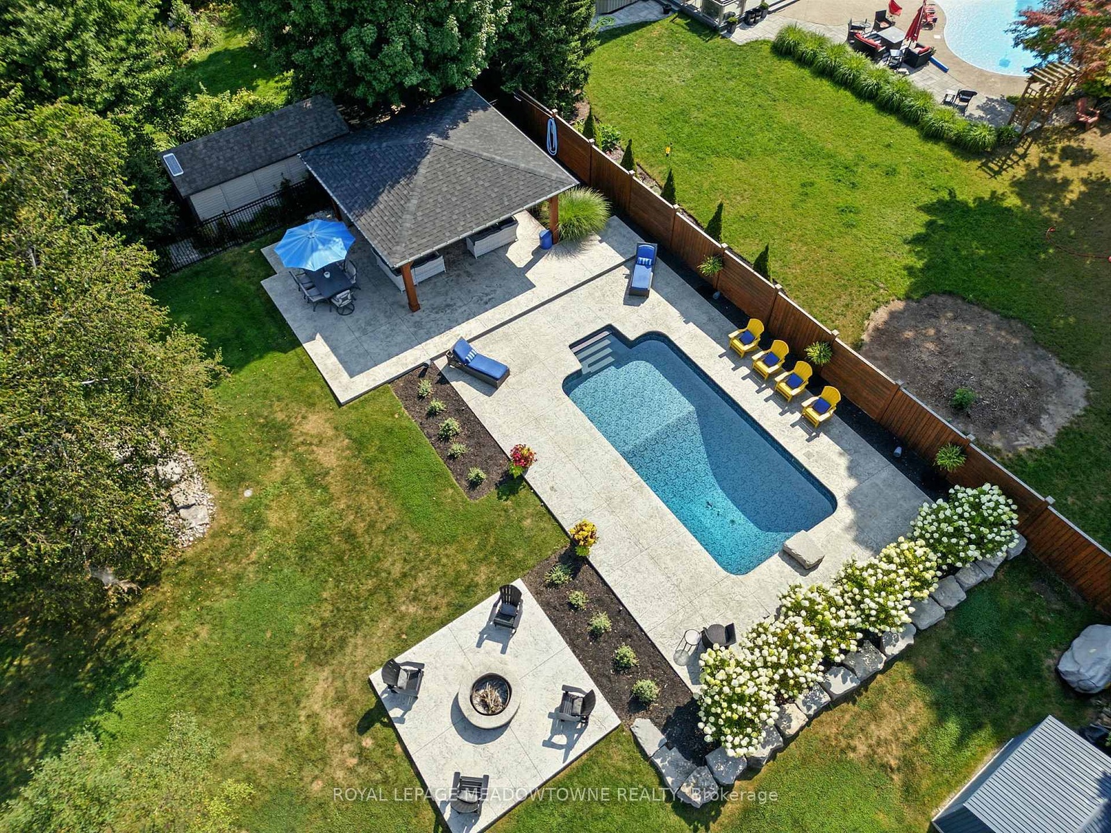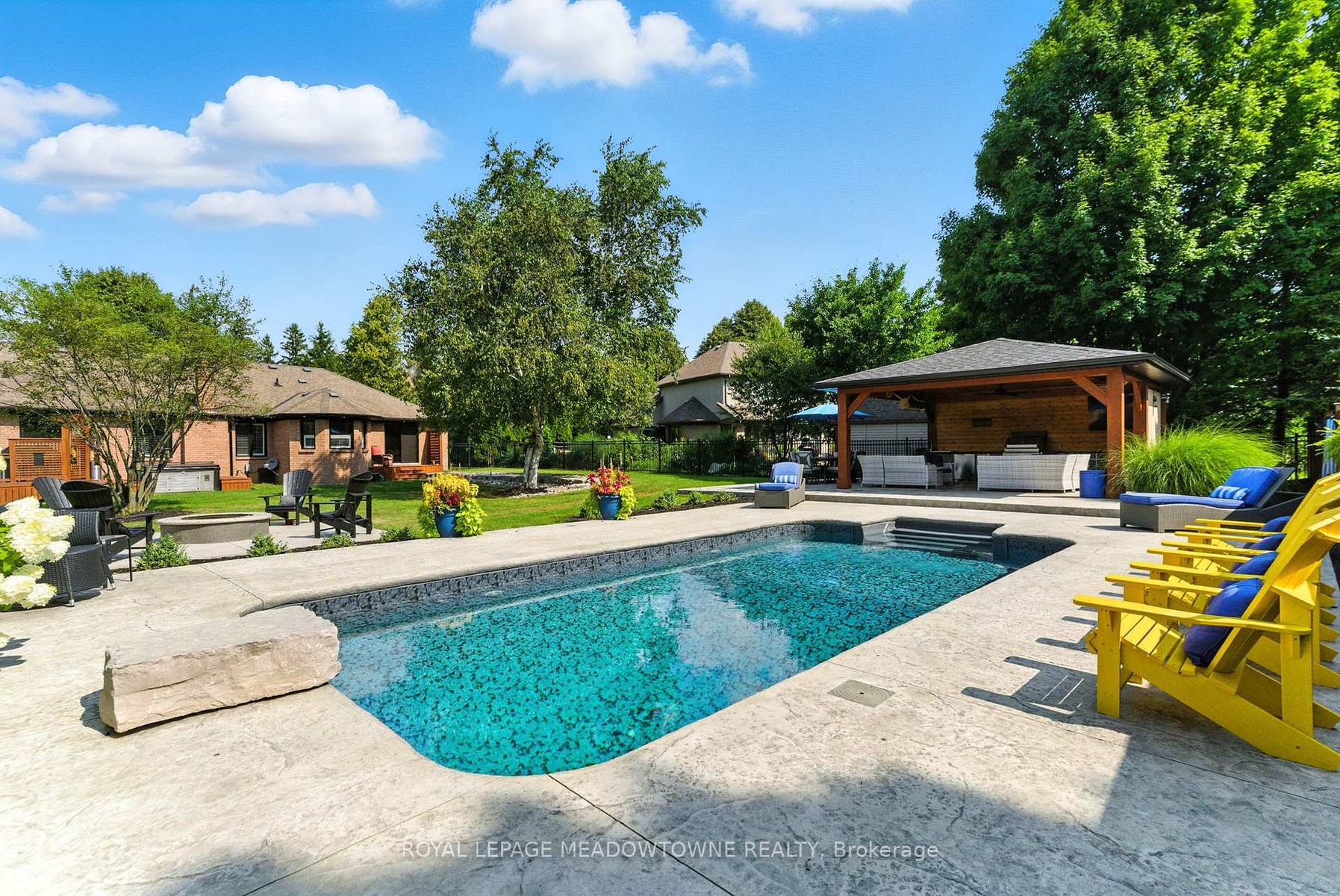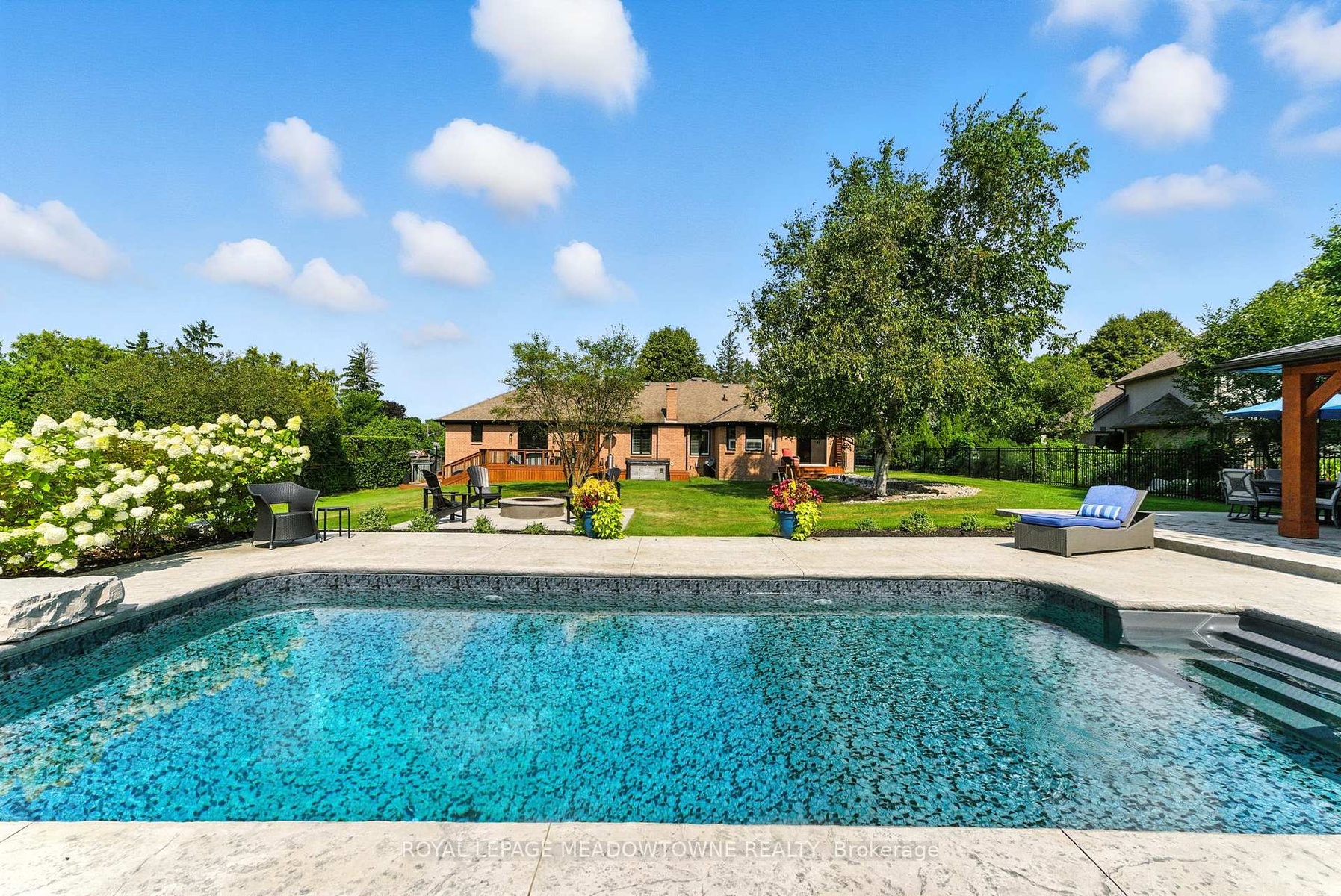 Looking for a fully updated bungalow in Carlisle? Opportunities like this are few and far between-and 2 Blueheron Lane delivers on every front.Set well back from the road and framed by mature landscaping, the home offers a strong sense of privacy and curb appeal from the moment you arrive.Completely reimagined, every inch of this home has been thoughtfully updated-so much so, it genuinely feels like new. Bright, spacious principal rooms are filled with natural light, with the family and dining areas flowing seamlessly into the kitchen-the true heart of the home. Picture weekends with family gathered around the oversized island, conversations carrying as dinner comes together-effortless, social, and exactly how a home should feel.Three generous bedrooms include a luxurious primary suite with a walk-out to the backyard, a five-piece ensuite, and a walk-in closet-offering a quiet retreat at the end of the day.The fully finished basement, complete with a separate side entrance, adds incredible flexibility with two additional bedrooms, a home office, gym, and a rec room with projection TV. With rough-ins for a kitchen and second laundry, it's well-suited for extended family or future in-law potential.Outdoors, the experience only gets better. Designed for exceptional year-round living, the backyard feels like a private resort. Summer days by the saltwater pool, evenings soaking in the hot tub with music playing and a book in hand, and cooler nights gathered under the pavilion-complete with hardwired Fibe internet, outdoor kitchen and industrial heaters-extend the season well beyond expectations. A fire pit and mature landscaping complete the setting, creating a space that's both private and inviting. With a new roof in 2026 and a long list of upgrades throughout, this is a rare opportunity to step into a home where everything has already been done-simply move in and enjoy.