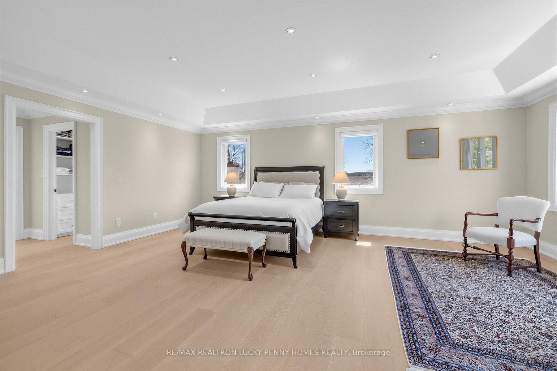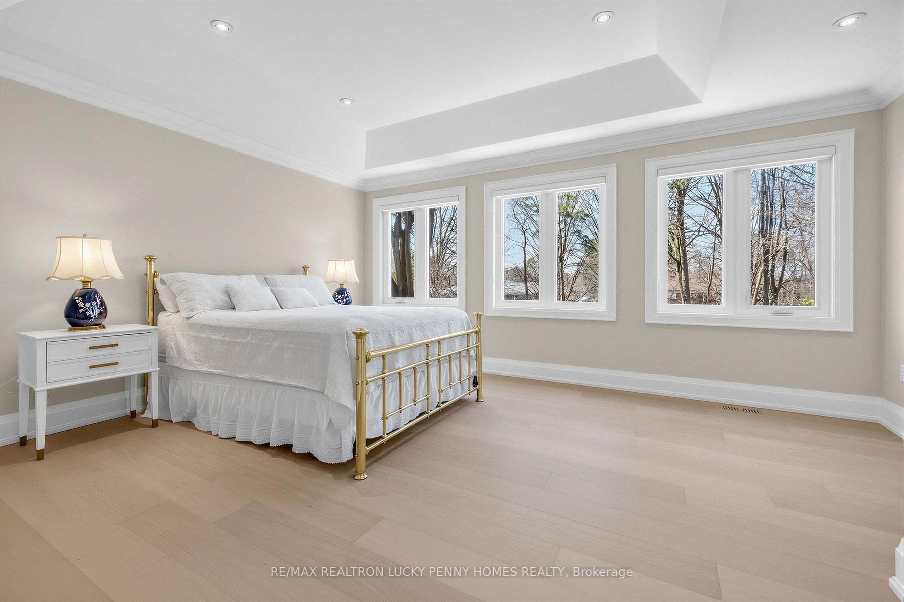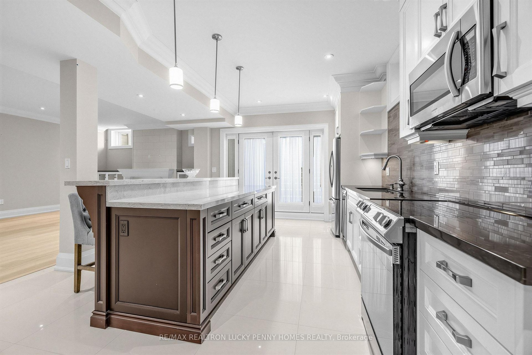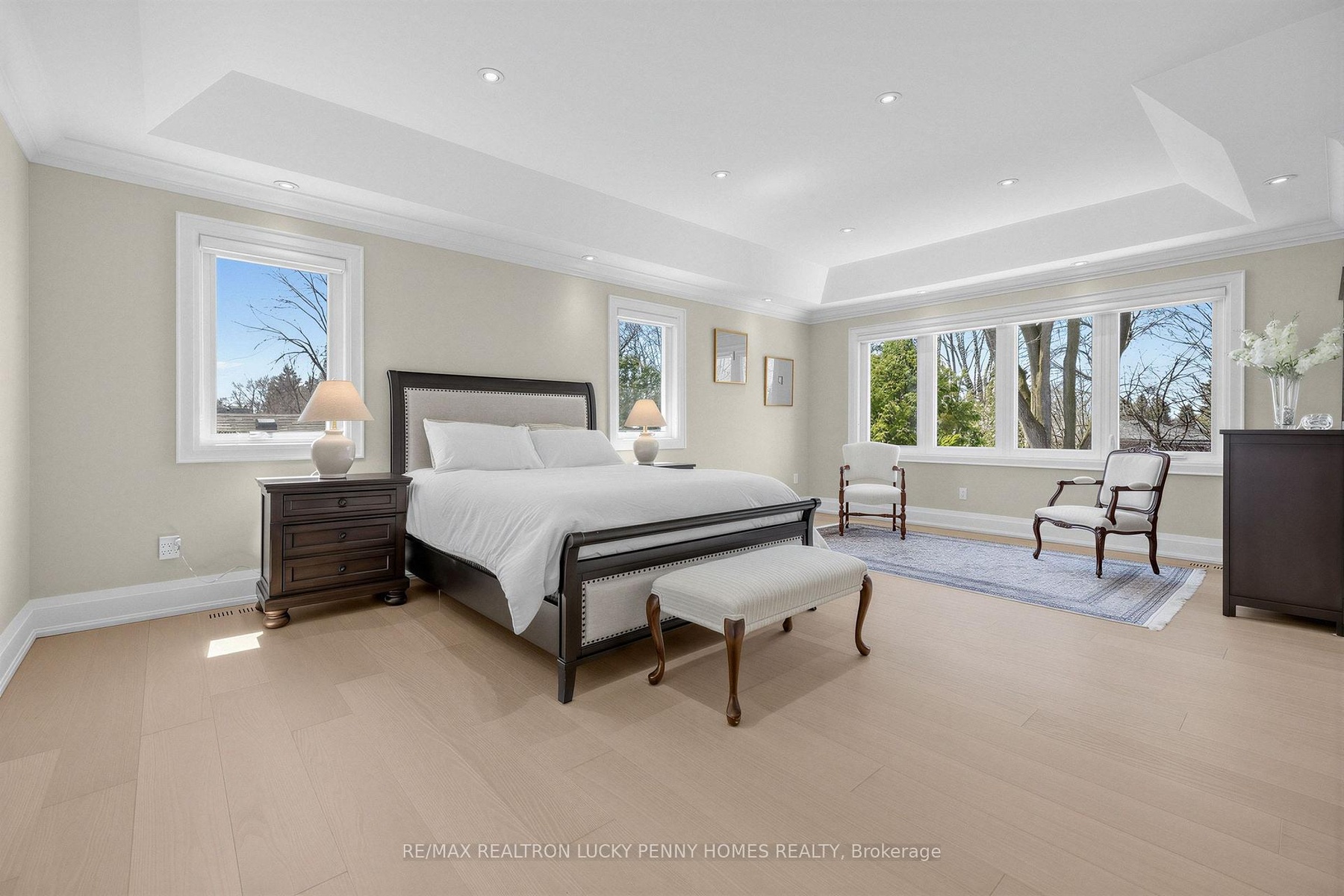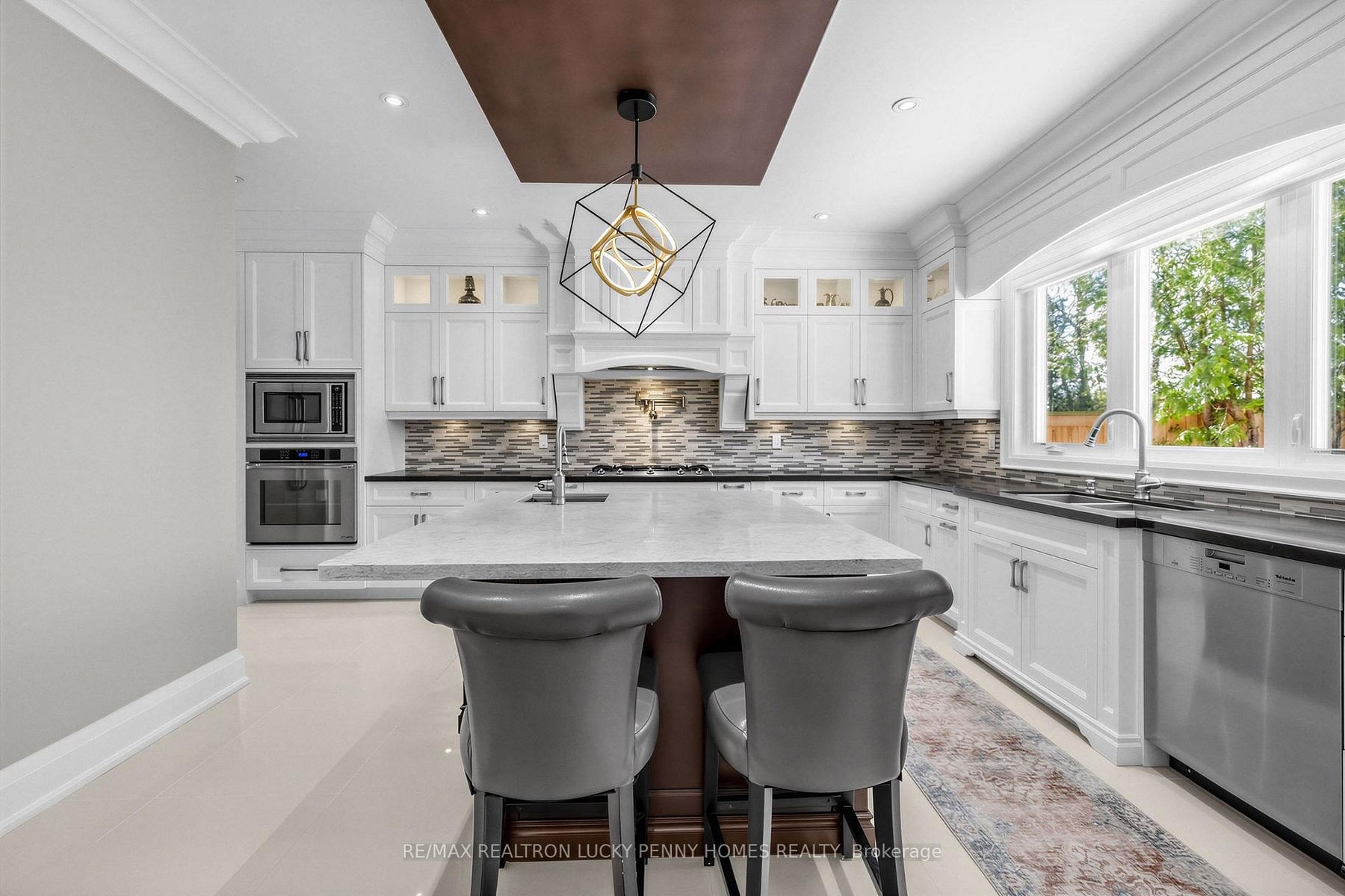 Set on an exceptional 72' x 156' premium lot, this quality custom-built home in a highly desired neighbourhood offers over 4,000 sq ft above grade plus a fully finished walk-up basement, delivering scale, elegance, and comfort in one of Markham's most established communities. From the moment you arrive, the elevated setting and refined exterior create a commanding yet private presence.Inside, the home showcases sophisticated craftsmanship throughout, featuring waffle ceilings, wainscoting detailing, rich hardwood floors, and a skylight that fills the space with natural light. The chef-inspired kitchen connects seamlessly to the breakfast and family areas, forming the true heart of the home. A main floor library/office, thoughtfully designed with flexibility in mind, can also function as a private in-law suite.The upper level offers generously proportioned bedrooms, each thoughtfully appointed with elegant tray ceilings. A walk-out balcony on the second level provides a perfect spot to enjoy views of the beautifully landscaped backyard. The serene primary suite is a true retreat, featuring two walk-in closets and a spa-inspired 6-piece ensuite. Added convenience includes laundry facilities on the upper level, with additional laundry in the basement. The lower level extends the living space with a versatile setting for recreation or extended family, featuring a well-designed kitchen area for added functionality. Outdoors, professionally finished patio stonework and landscaped surroundings enhance the private backyard setting, perfect for family gatherings and summer evenings. Located within a highly sought-after school district and close to parks, transit, and everyday amenities, this residence presents a rare opportunity to own a custom luxury home on one of Bullock's most prestigious streets.