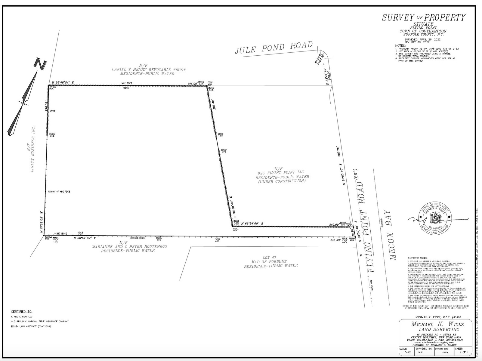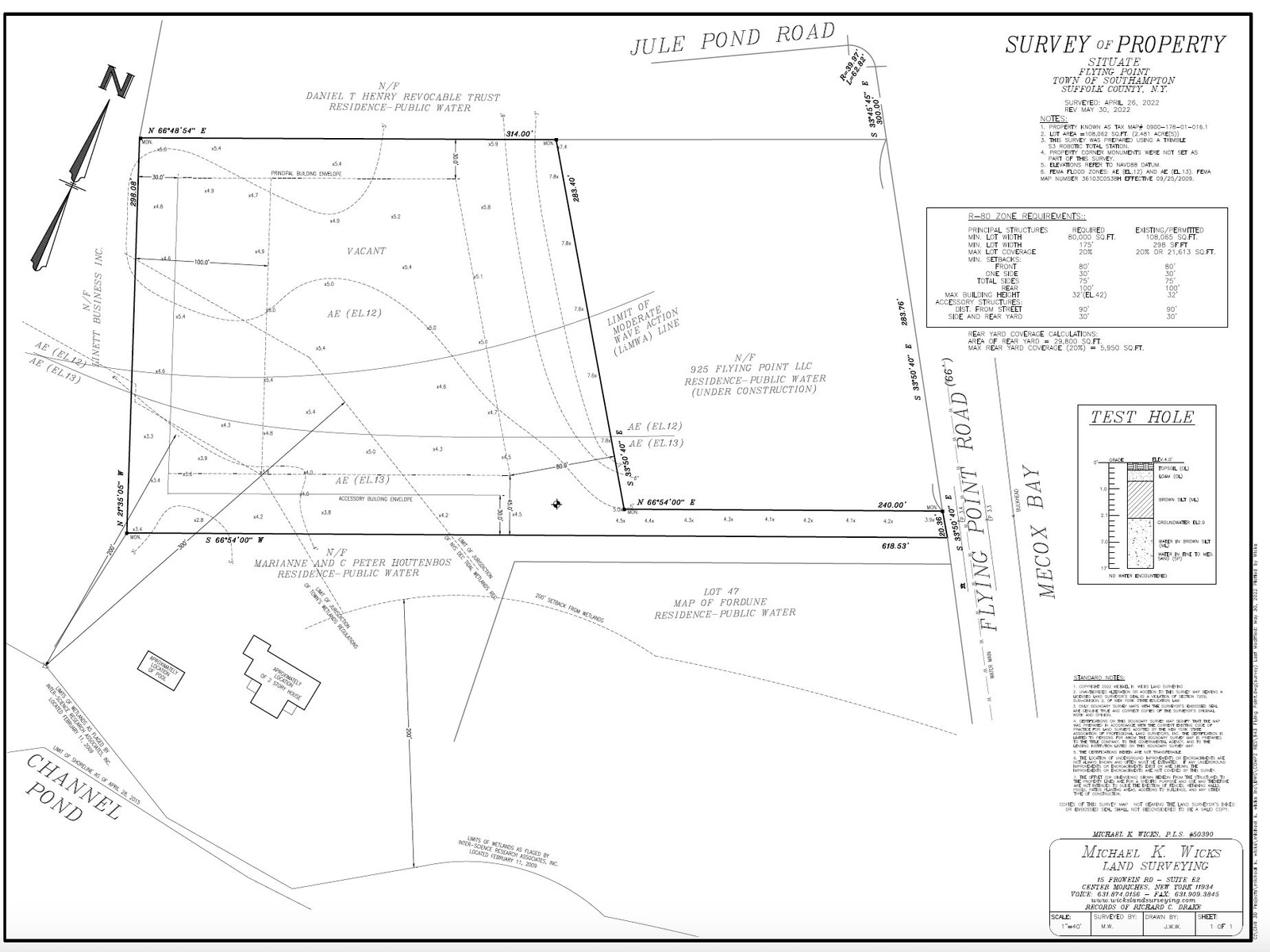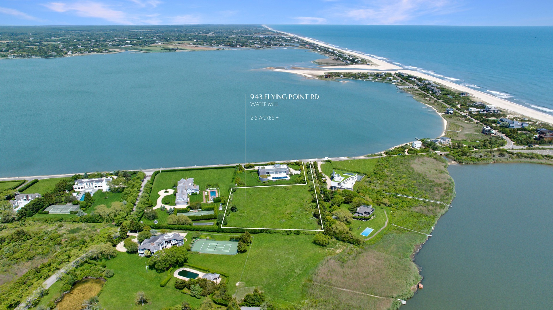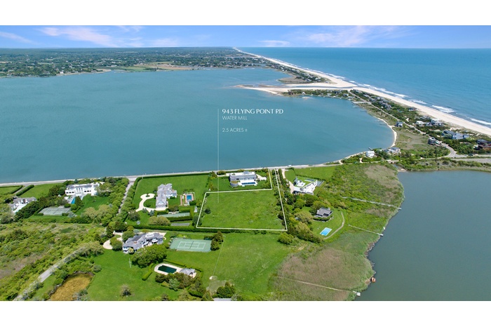 Nestled on one of the most coveted stretches of coastline in the Hamptons, 943 Flying Point Road in Water Mill presents a once-in-a-lifetime opportunity to craft a world-class estate. Encompassing over 2.5 acres of cleared, build-ready land—with no wetland impacts—this rare offering boasts 270-degree panoramic views that sweep across Mecox Bay, Channel Pond, and the Atlantic Ocean. Set back from the road for ultimate privacy, the property combines serenity and exclusivity while placing you mere steps from some of the Hamptons’ most iconic beaches.