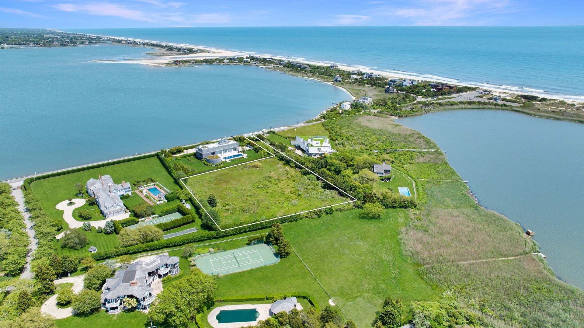 Perfectly positioned at the intersection of Water Mill and Bridgehampton, this ultra-exclusive location is defined by its natural beauty, peaceful surroundings, and proximity to the water. The lot offers direct access to Mecox Bay, inviting endless summer adventures—from kayaking to paddleboarding—right from your backyard. With zoning that allows for a 15,000± square-foot residence, pool, pool house, tennis court, and expansive terraces, the possibilities for design are as vast as the views themselves.