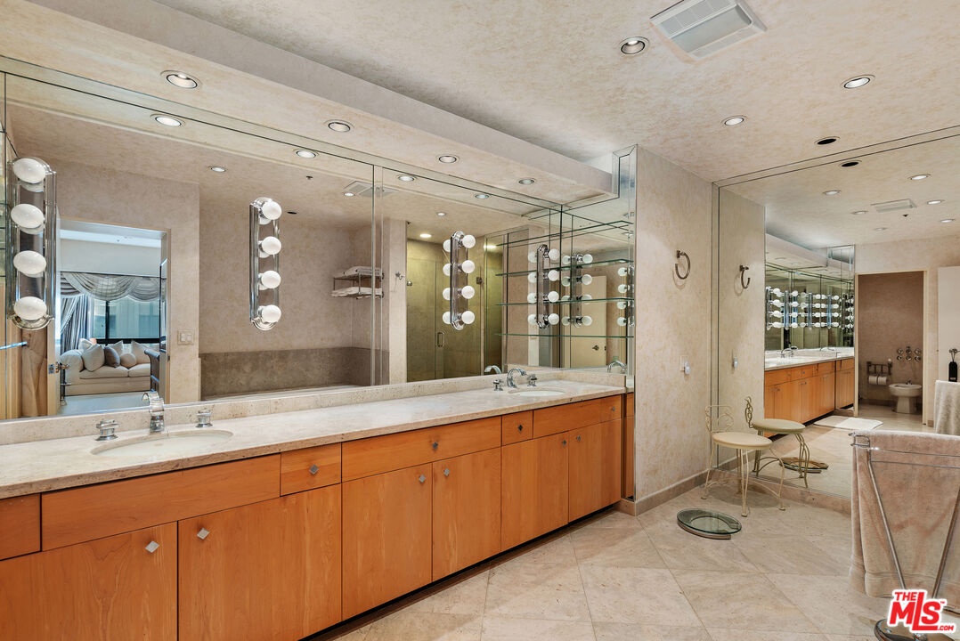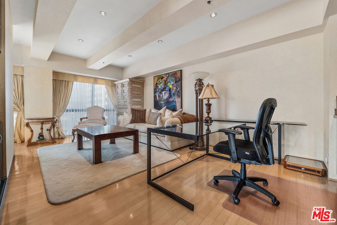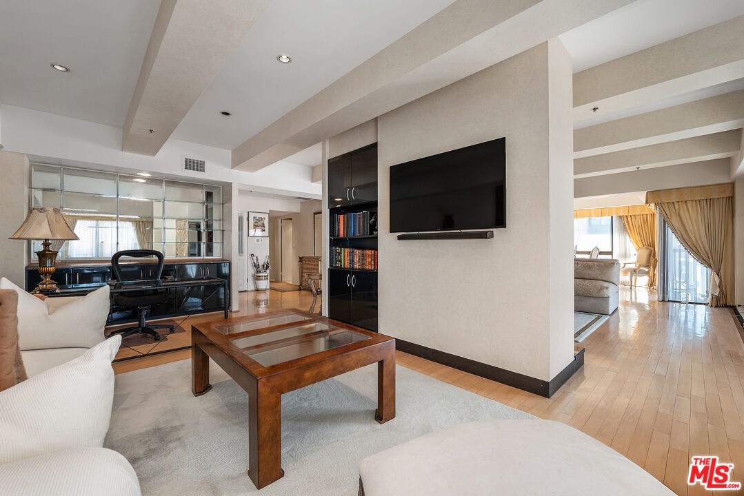 Welcome to The Longford - gorgeous views from every room in this beautiful two-bedroom and three-bathroom remodeled residence with a large den all with HARDWOOD FLOORS in those rooms. This high-floor west/northwest-facing condo starts with a beautiful entrance area that leads to the expansive living room and dining area both with floor-to-ceiling windows flooded with natural sunlight. A sliding glass door to the terrace for relaxing and to take in the views of the cityscape, mountains and sunsets. The large primary bedroom features a large walk-in closet and four other spacious closets behind sliding glass mirrors or doors. The primary updated spa-bathroom has dual sinks, a separate tub and shower, and a private bidet and toilet area. The second bedroom is very spacious with excellent closet space and has its own interior bathroom, and there is a 1/2 guest bathroom. The remodeled gourmet kitchen has beautiful cabinetry and countertops, and an eating area by the window. A spacious laundry room with side/side washer /dryer is just off the kitchen. The open floor plan provides the ideal environment for entertaining. Central Air/Heat and Internet. Two side-by-side parking spaces and a storage space are included. The Longford is a full-service high-rise luxury building offering 24-hour doorman service, concierge desk, valet parking, pool, gym, and banquet room
