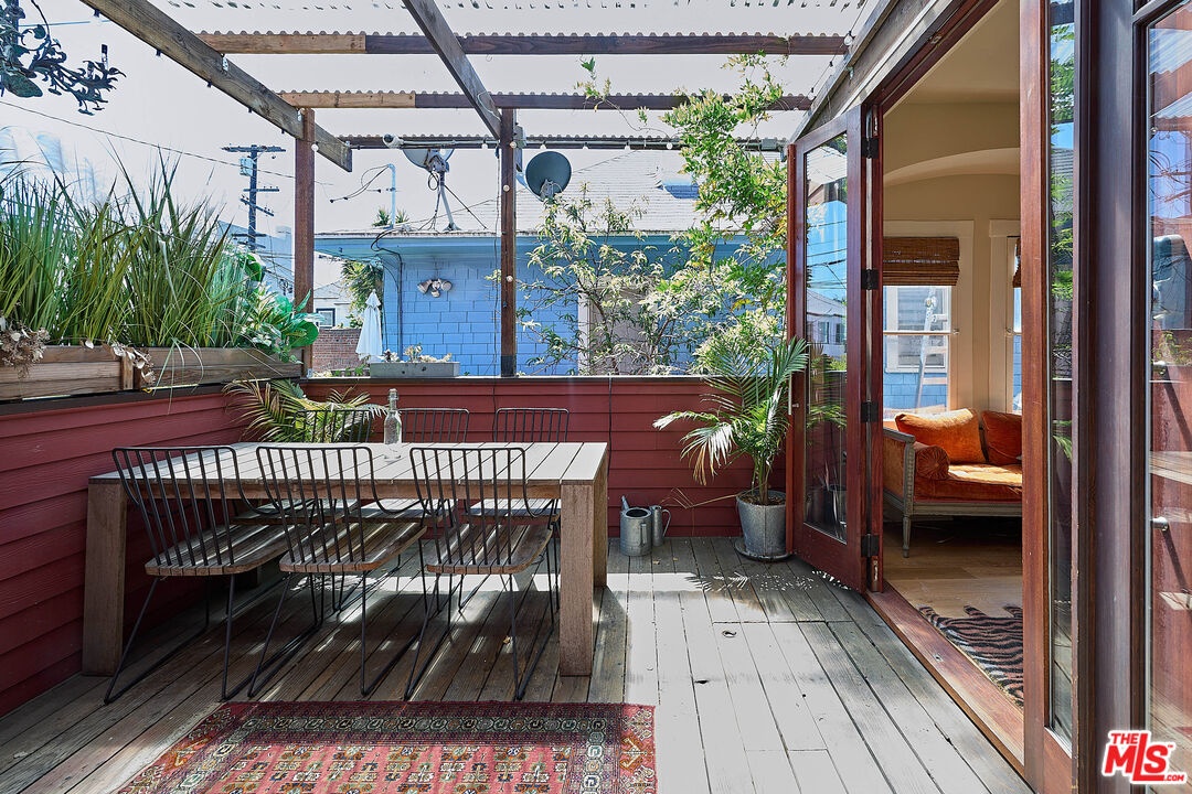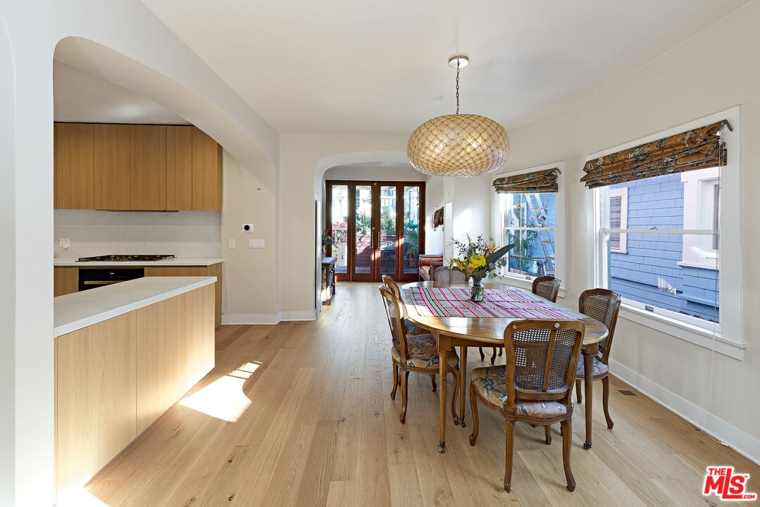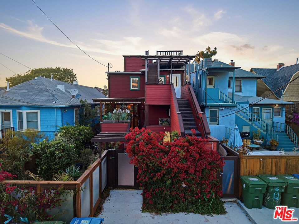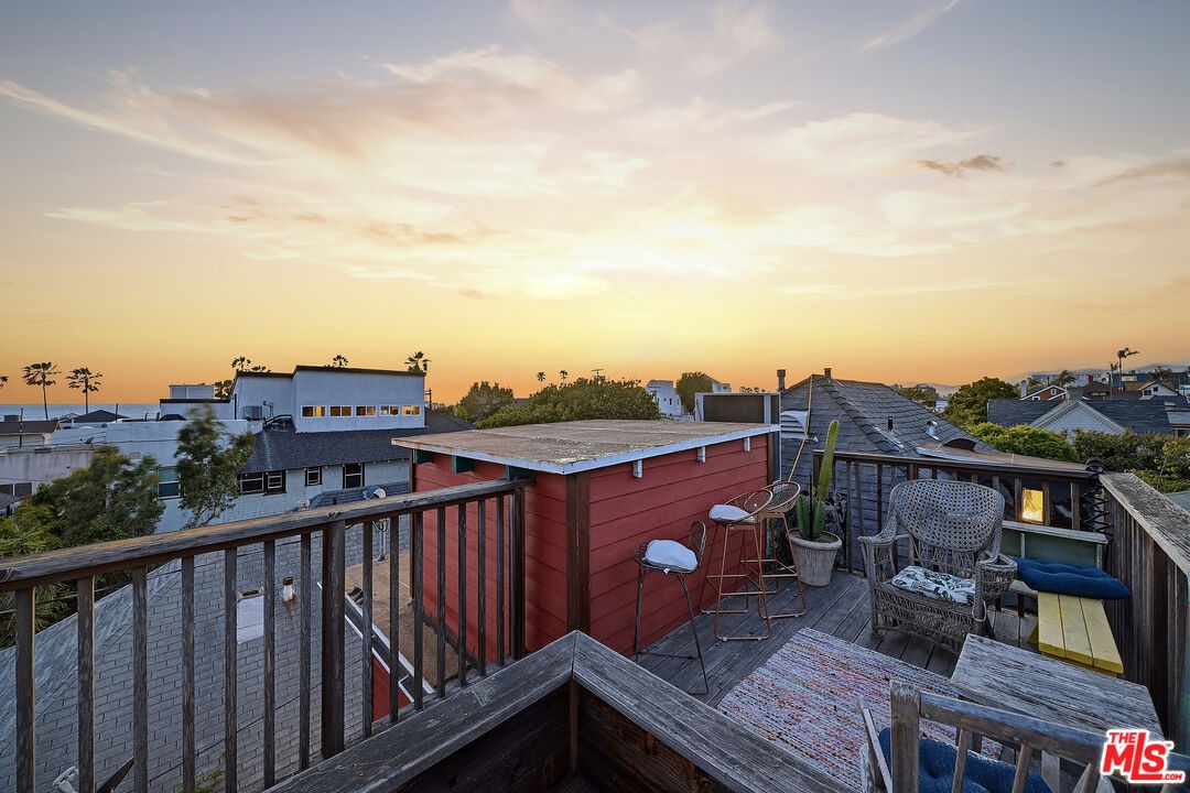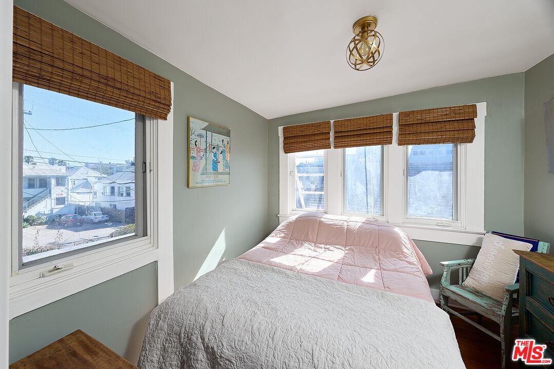 This iconic walk street Craftsman, just moments from the sand, has been thoughtfully reimagined creating a timeless coastal retreat. This rare 5-bedroom, 3-bathroom residence offers a beautifully curated living experience that honors its classic roots while embracing contemporary design. At the heart of the home, a fully redesigned kitchen showcases premium Fisher & Paykel and Miele appliances, seamlessly connecting to a spacious rear deck - perfect for indoor-outdoor gatherings. Newly installed hardwood floors on the main level pair beautifully with the restored original hardwood upstairs, creating a warm aesthetic throughout. The main level features a versatile bedroom or office and a beautifully updated full bath. Upstairs, the tranquil primary suite offers picturesque, tree-lined views, accompanied by two additional bedrooms, two stylishly renovated bathrooms, and a generous family room with sophisticated detailing. A tucked-away loft provides an intimate bonus space, while the expansive rooftop deck captures ocean views. Outdoor living is equally inviting, complete with a private outdoor shower for post-beach days and a rare three-car parking pad. Modern conveniences include a tankless water heater, Pelican whole-house water filtration system, and a comprehensive security system with cameras. With a separate entrance to the upper level, the home also offers flexibility for a private two-bedroom living space. Ideally located near Abbot Kinney, Rose Avenue, the Venice Canals, and an array of beloved dining, shopping, and wine destinations, this exceptional residence embodies the best of Venice living.