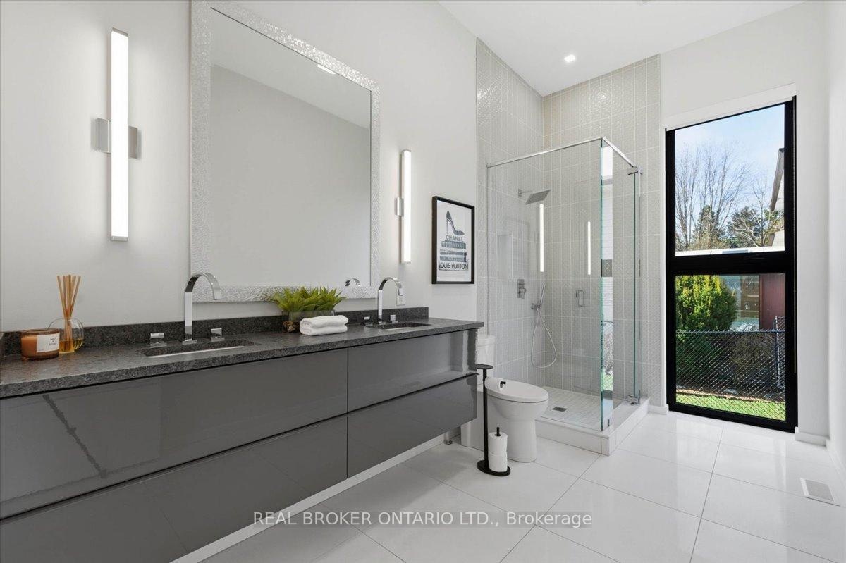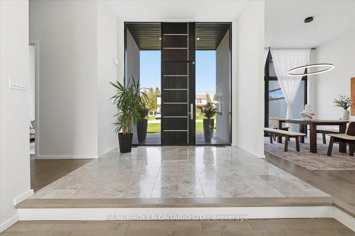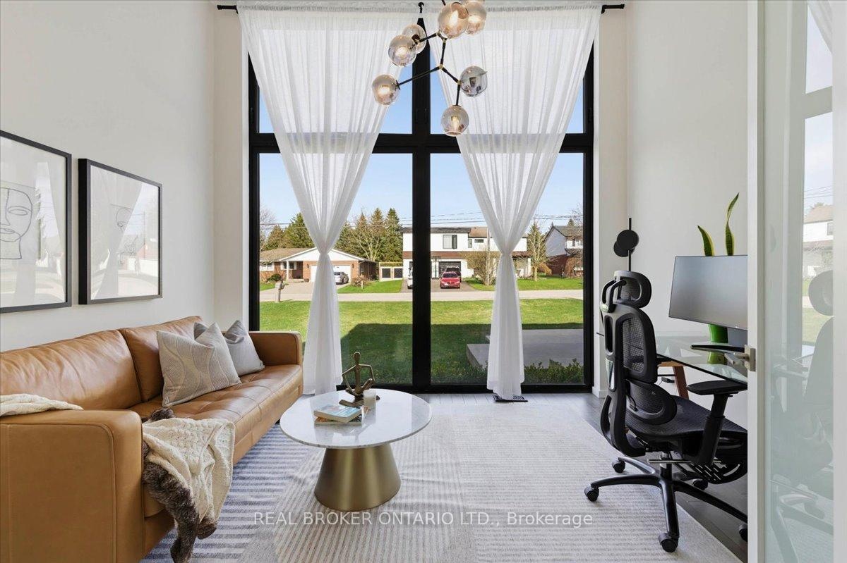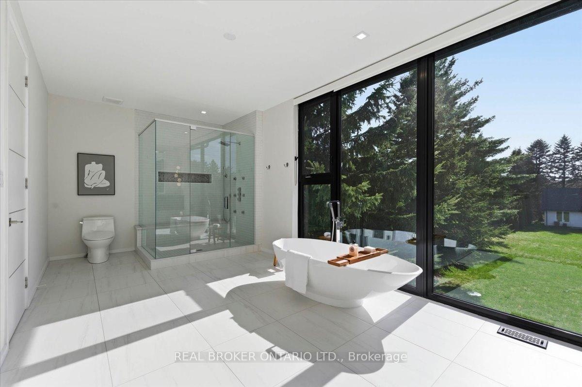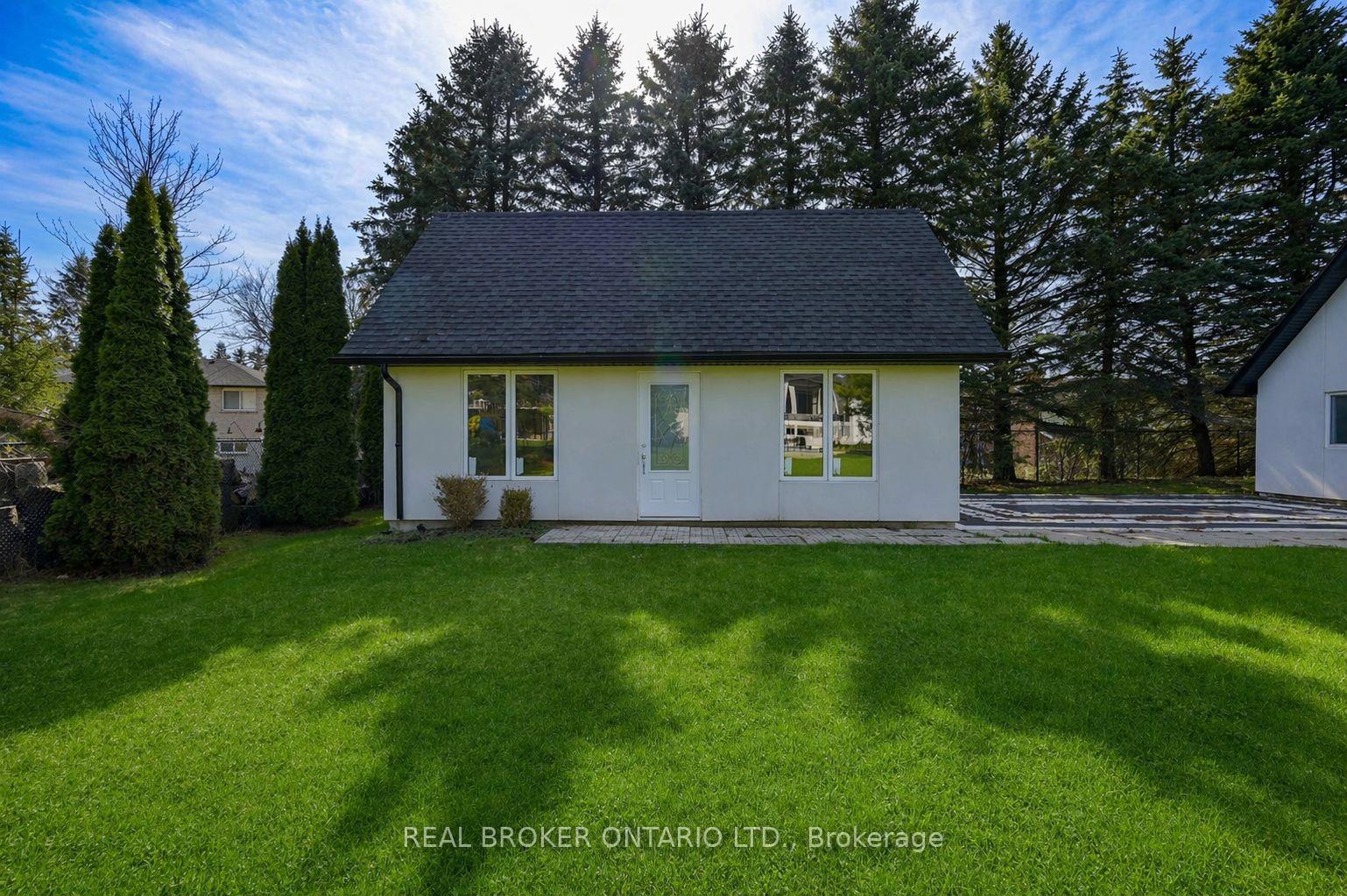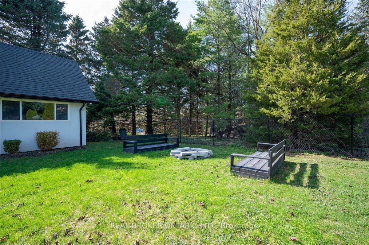 Modern architecture, set within a private acre setting. This custom-built bungalow in Mannheim brings together scale, light, and a seamless connection to the outdoors. Offering nearly 4,000 square feet above grade, the home is defined by clean lines, a full stucco exterior, and an understated yet intentional presence. Inside, 13 ft ceilings carry through the main living area, creating volume without excess. The family room anchors the home, where a statement fireplace set against a marble feature wall defines the space, while a full wall of glass frames uninterrupted views of the backyard. The outdoors becomes part of the everyday experience. The kitchen sits at the centre, refined and functional, with a waterfall-edge island and integrated finishes that support the space without overpowering it. With 5 bedrooms, 3 full bathrooms, and a dedicated office, the layout offers both separation and flexibility. The primary suite is set apart as a private retreat, positioned to take full advantage of the property. Elevated views extend over the backyard, with a private balcony that continues that connection outdoors, while the ensuite carries it further with a freestanding tub and glass shower. It's a space that feels quiet, intentional, and removed from the rest of the home. Additional space below offers 2,700 square feet ready to be shaped into wellness, recreation, or extended living. The backyard is where everything comes together. Set on a wide, tree-lined and fully fenced acre lot, the outdoor space is arranged around a saltwater pool with an automatic Coverstar safety cover, with multiple areas for dining, lounging, and gathering. A detached workshop, currently used as a golf simulator, and a separate storage shed add flexibility beyond the home. A two-car garage, equipped for electric vehicle charging, adds everyday convenience. Located just minutes from Kitchener-Waterloo, the setting offers privacy without compromise.